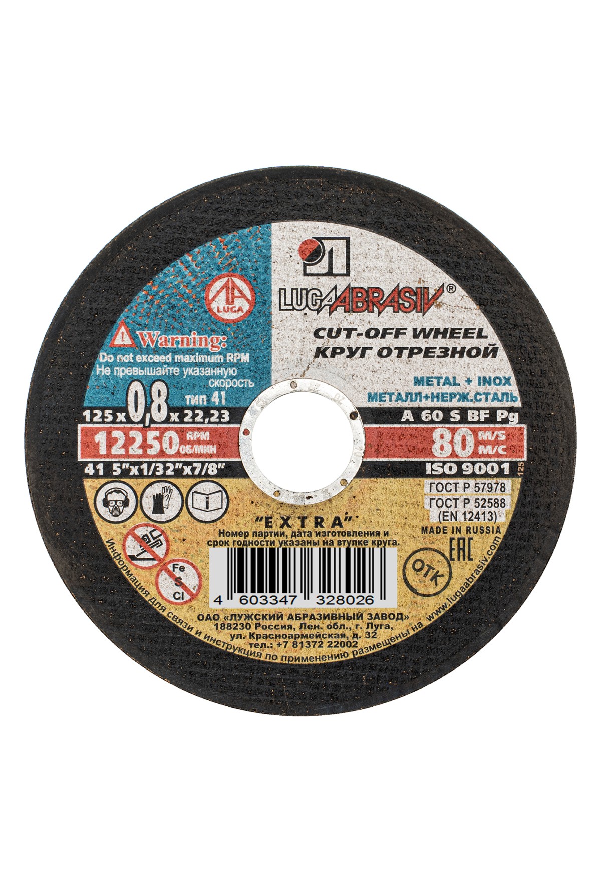 Круг отрезной по металлу, 125 х 0.8 х 22 мм "Луга" Россия