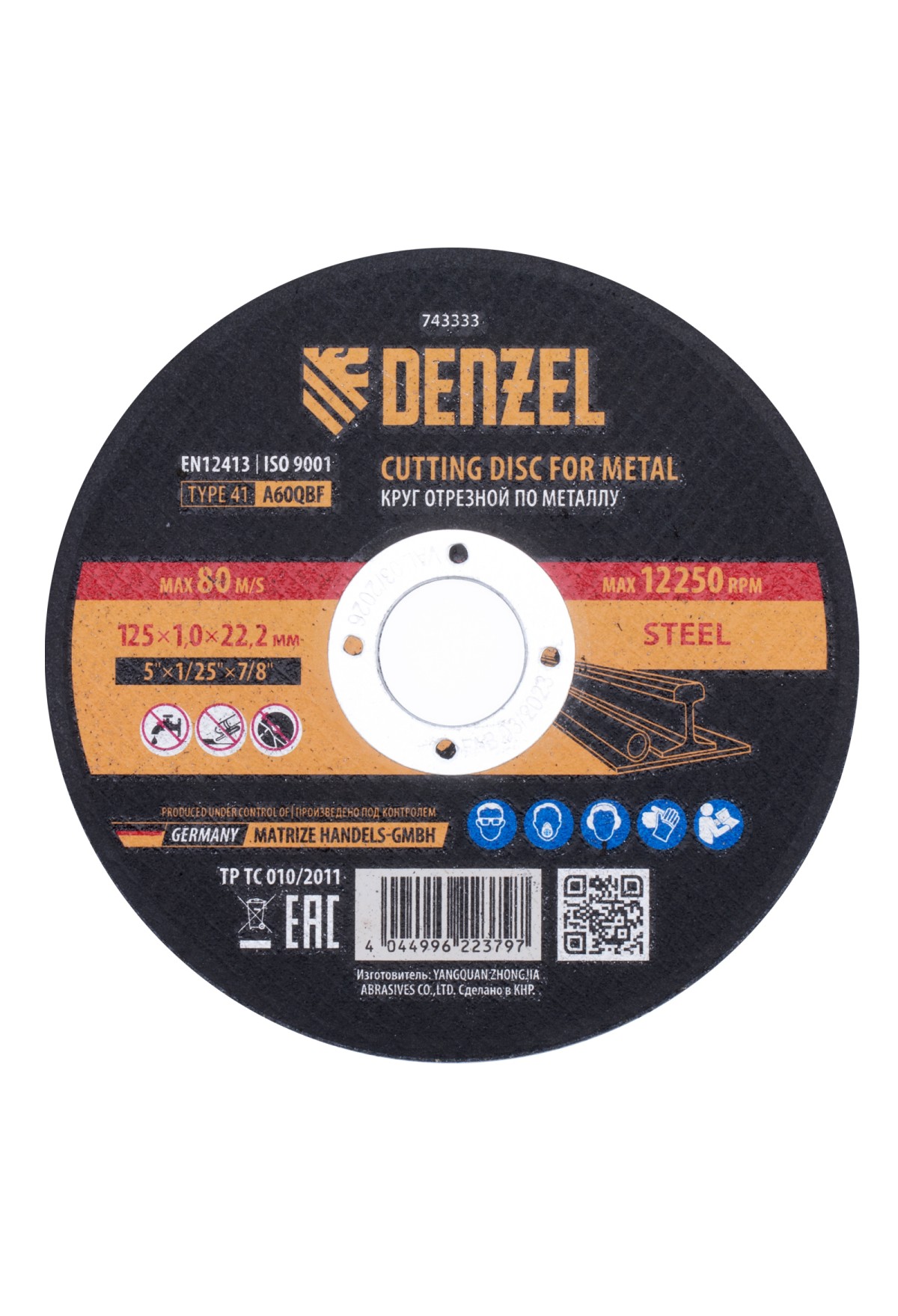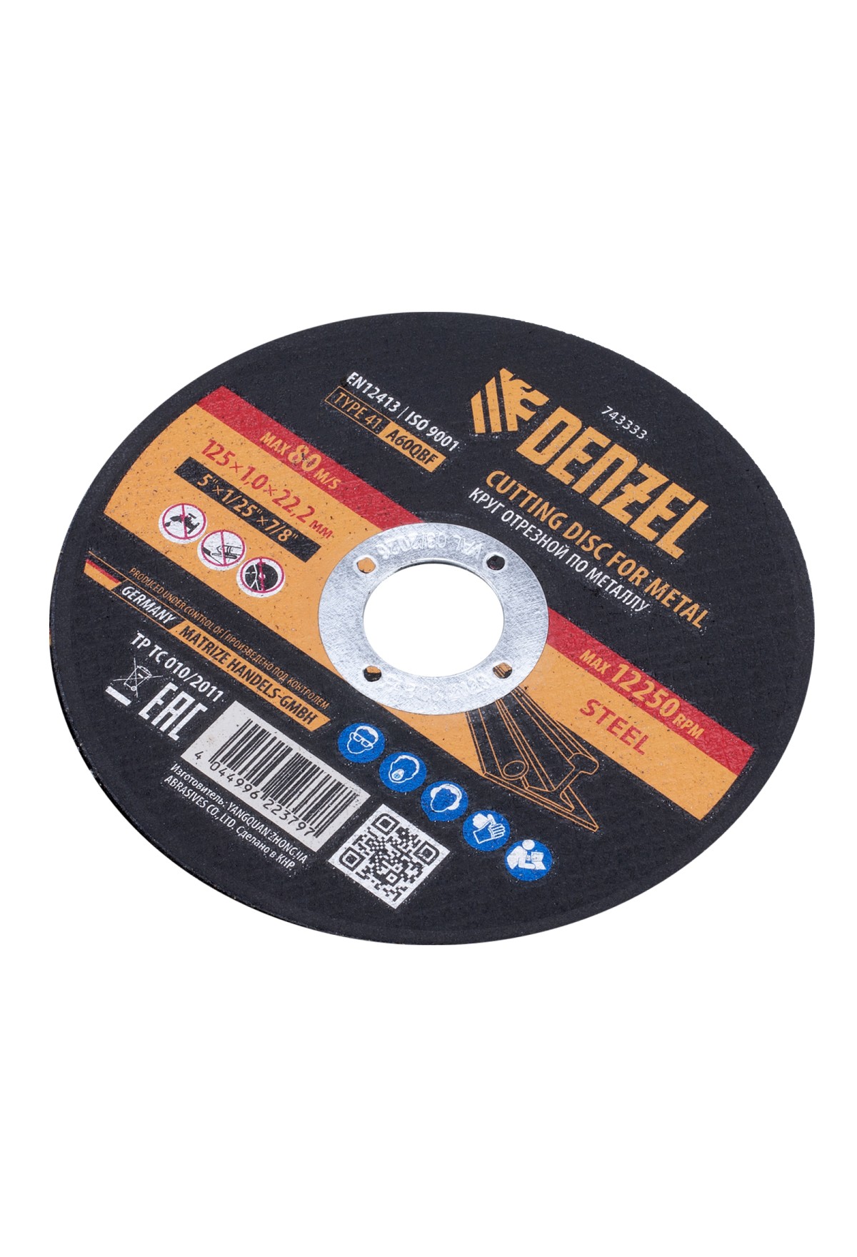 Технические характеристики Круг отрезной по металлу, 125 х 1,0 х 22,2 мм, A60QBF Denzel