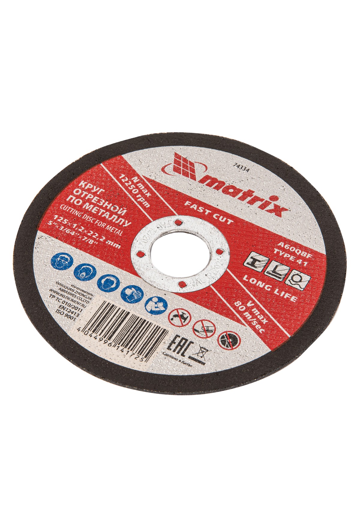Отрезной круг по металлу Matrix A60QBF 74334 размером 125 х 1,2 х 22,2 мм оптимален для сухого реза углеродистых сталей. Устанавливается на углошлифовальные машины с посадочным диаметром 22,2 мм. Круг рассчитан на бытовое использование в частной мастерской или гараже.