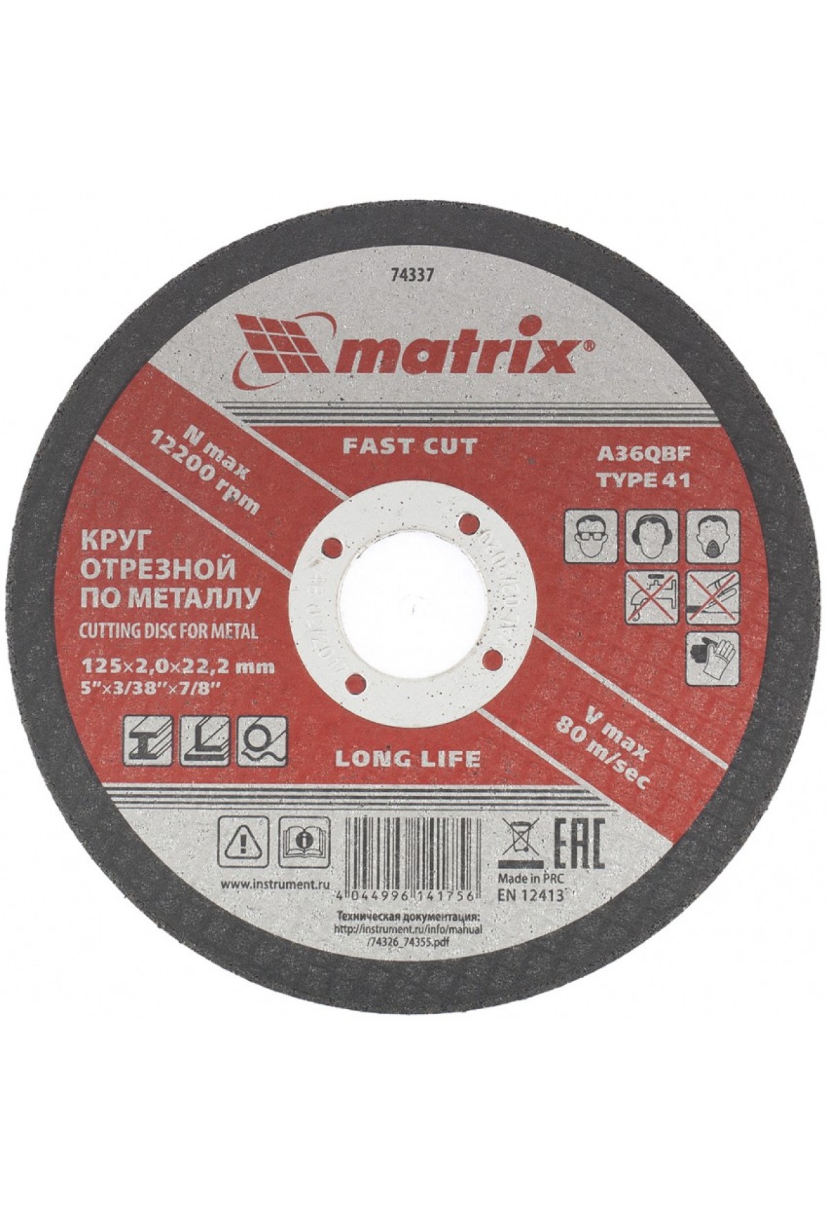 Технические характеристики Круг отрезной по металлу, 125 х 2 х 22 мм Matrix