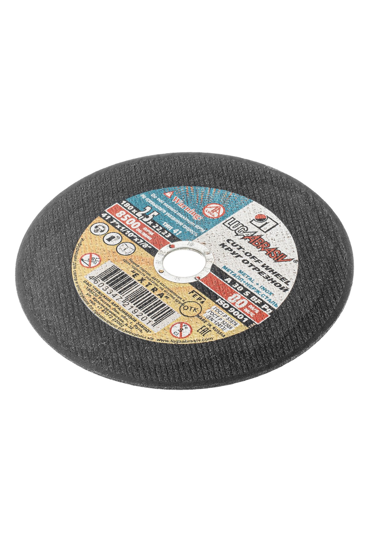 Технические характеристики Круг отрезной по металлу, 180 х 2.5 х 22 мм "Луга" Россия