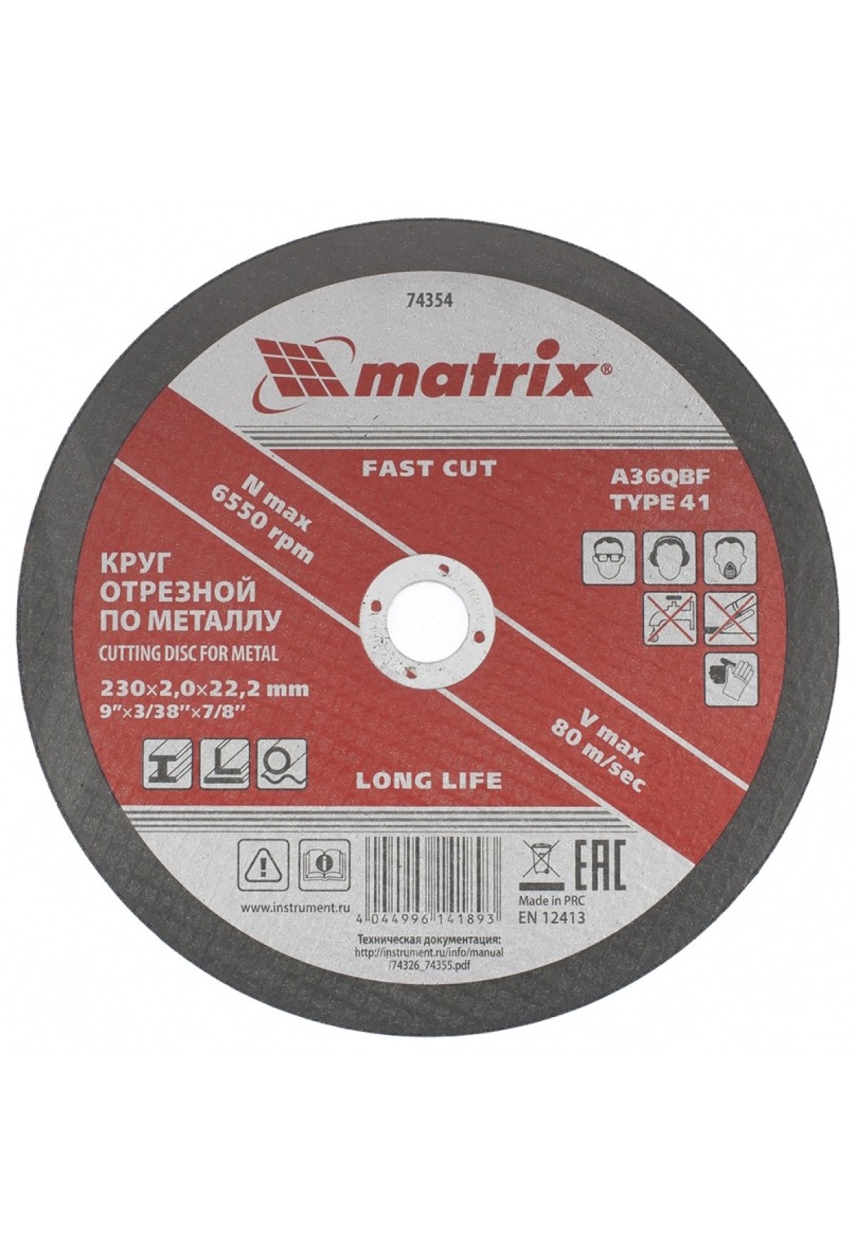 Тэги: Круг отрезной по металлу, 230 х 2 х 22 мм Matrix, VR6-74354, MATRIX, VR6, VR6-Круги и диски абразивные, VR6-Круги отрезные и зачистные армированные, VR6-Режущий инструмент