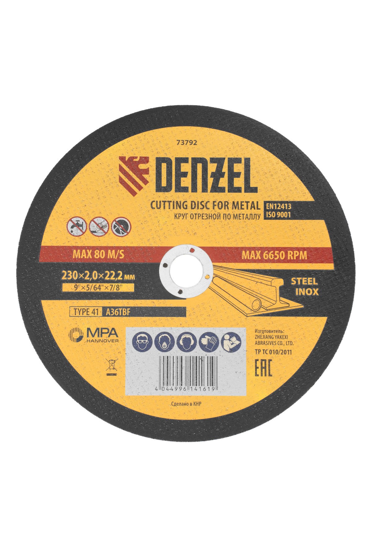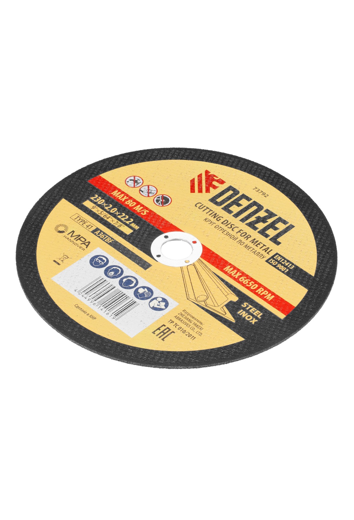Технические характеристики Круг отрезной по металлу, 230 х 2 х 22.2 мм Denzel