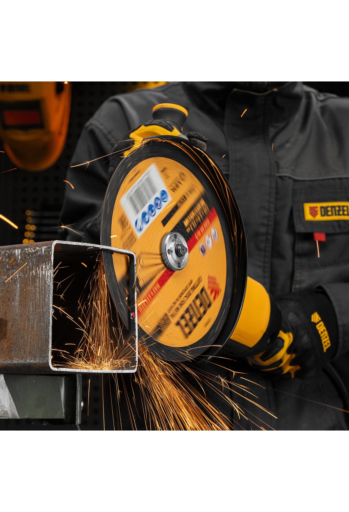 - Высокий ресурс — благодаря толщине 2 мм и средней по плотности структуре круг стабильно режет сталь даже при больших объемах работ.