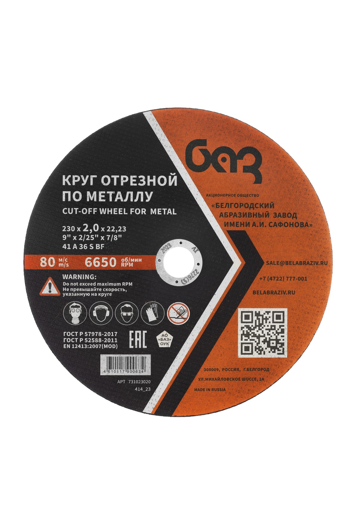 Технические характеристики Круг отрезной по металлу, 230 х 2,0 х 22,2 мм (БАЗ) Россия
