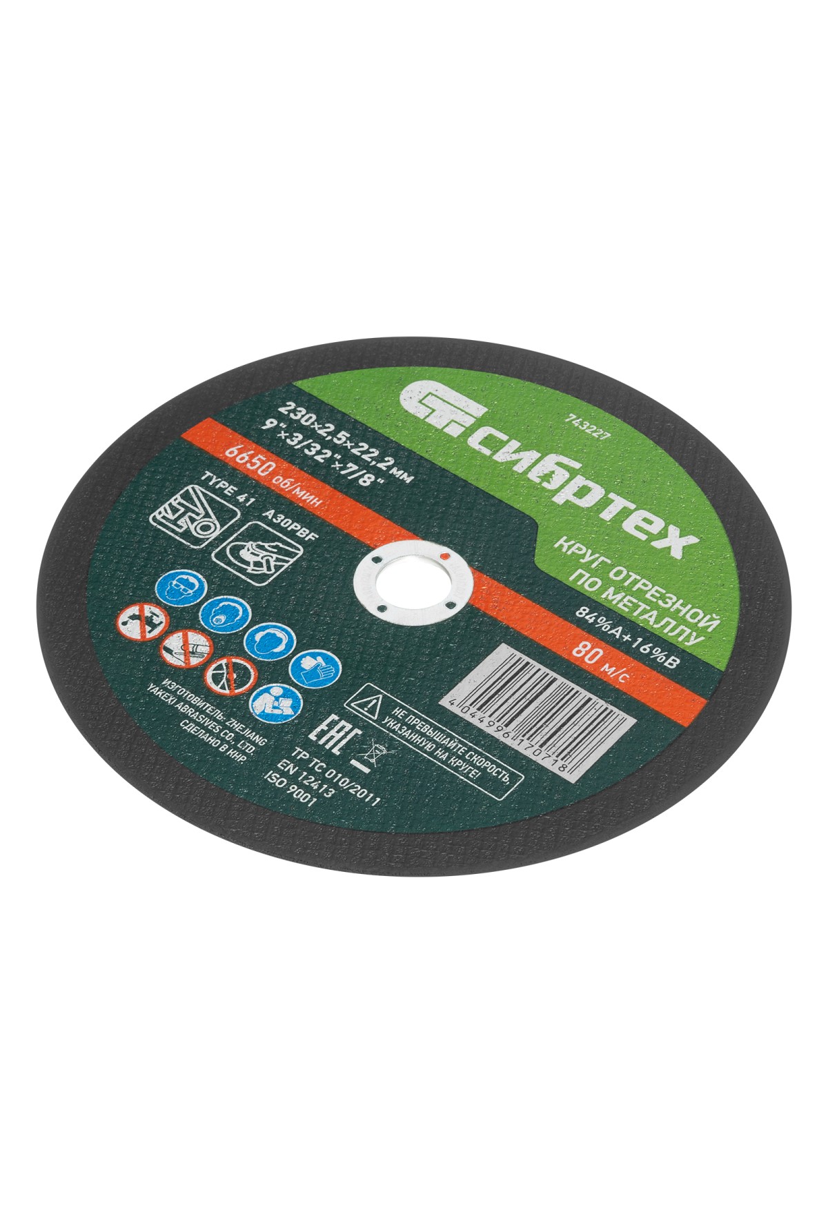 Технические характеристики Круг отрезной по металлу, 230 х 2.5 х 22.2 мм, 84%A+16%B Сибртех