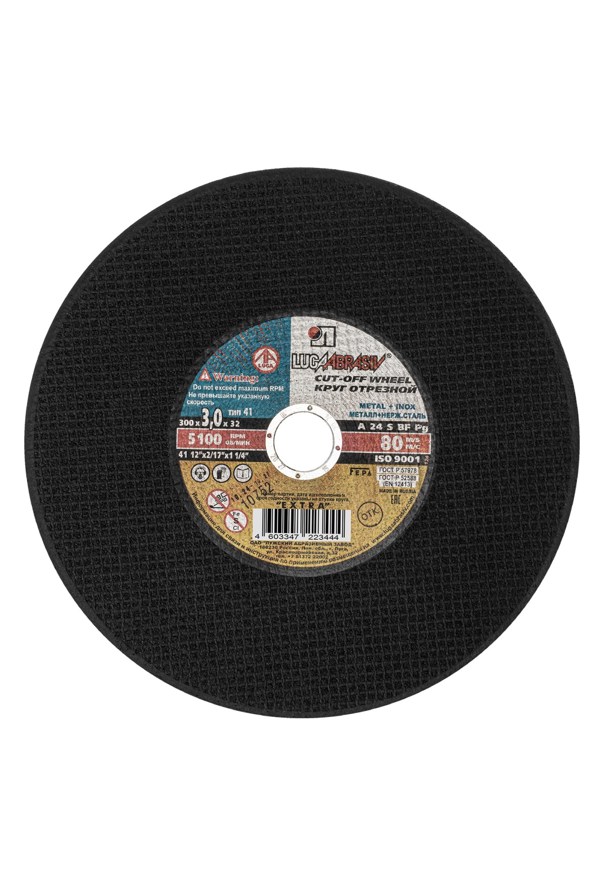 Технические характеристики Круг отрезной по металлу, 300 х 3.0 х 32 мм "Луга" Россия