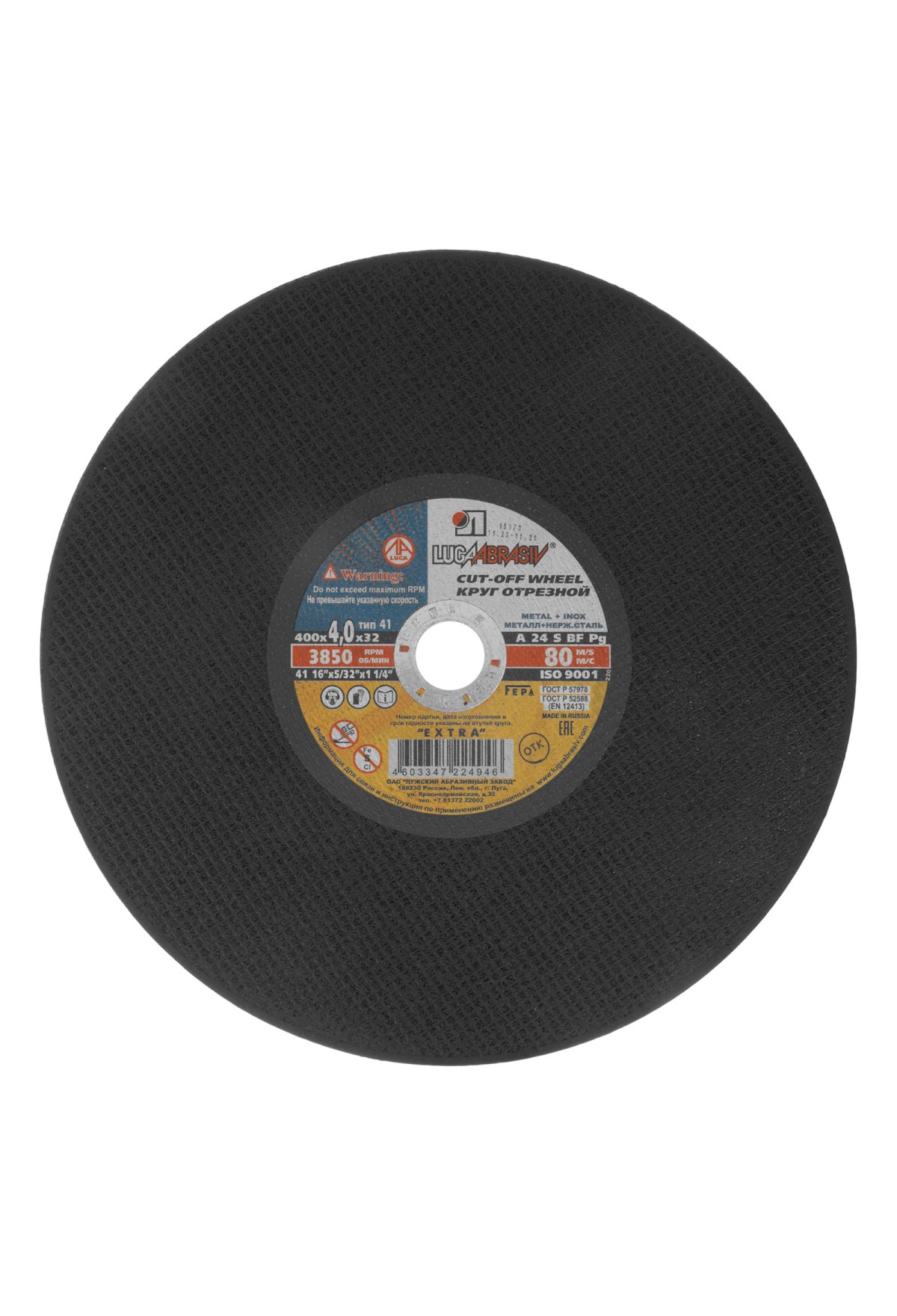 Технические характеристики Круг отрезной по металлу, 400 х 4.0 х 32 мм "Луга" Россия