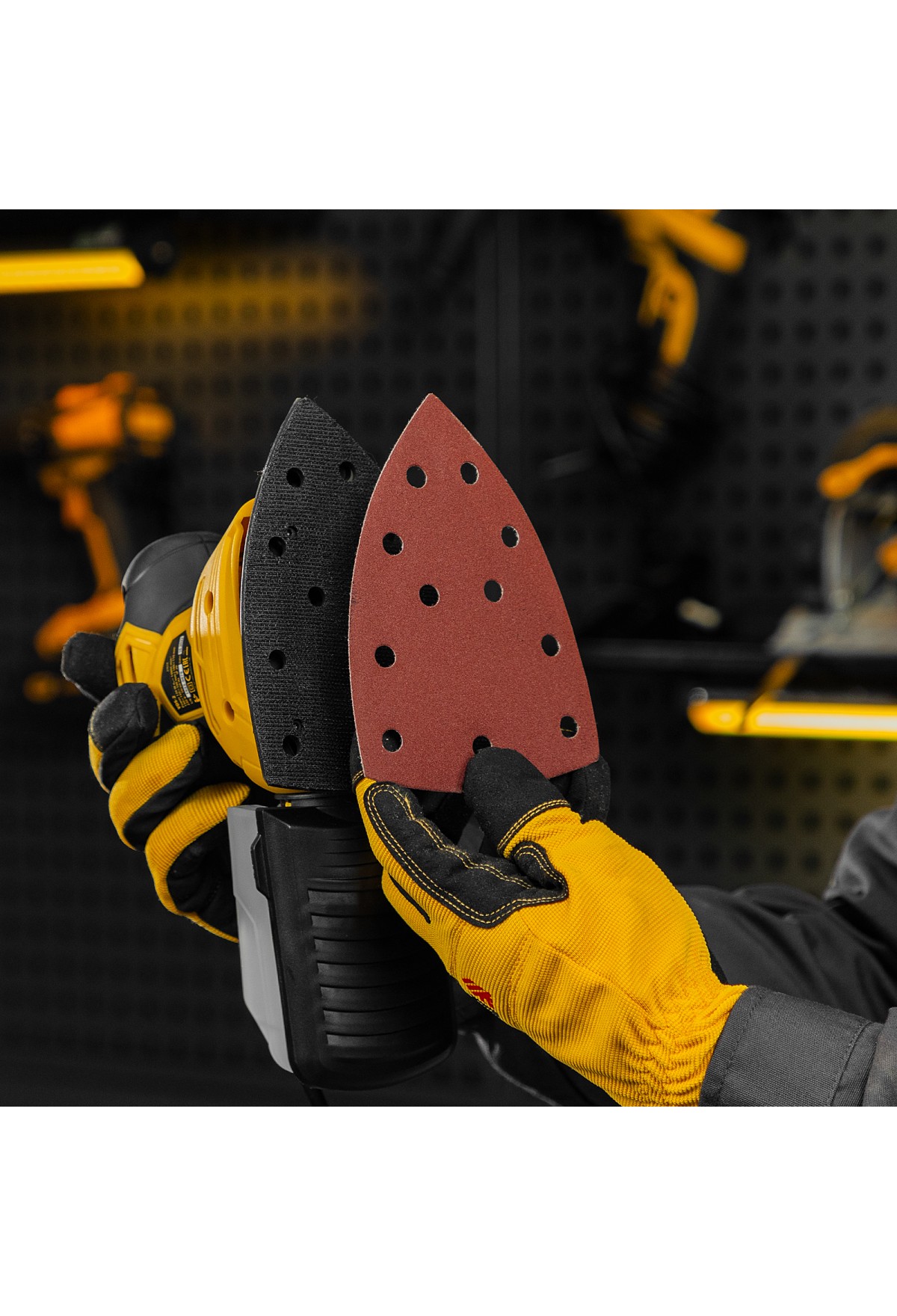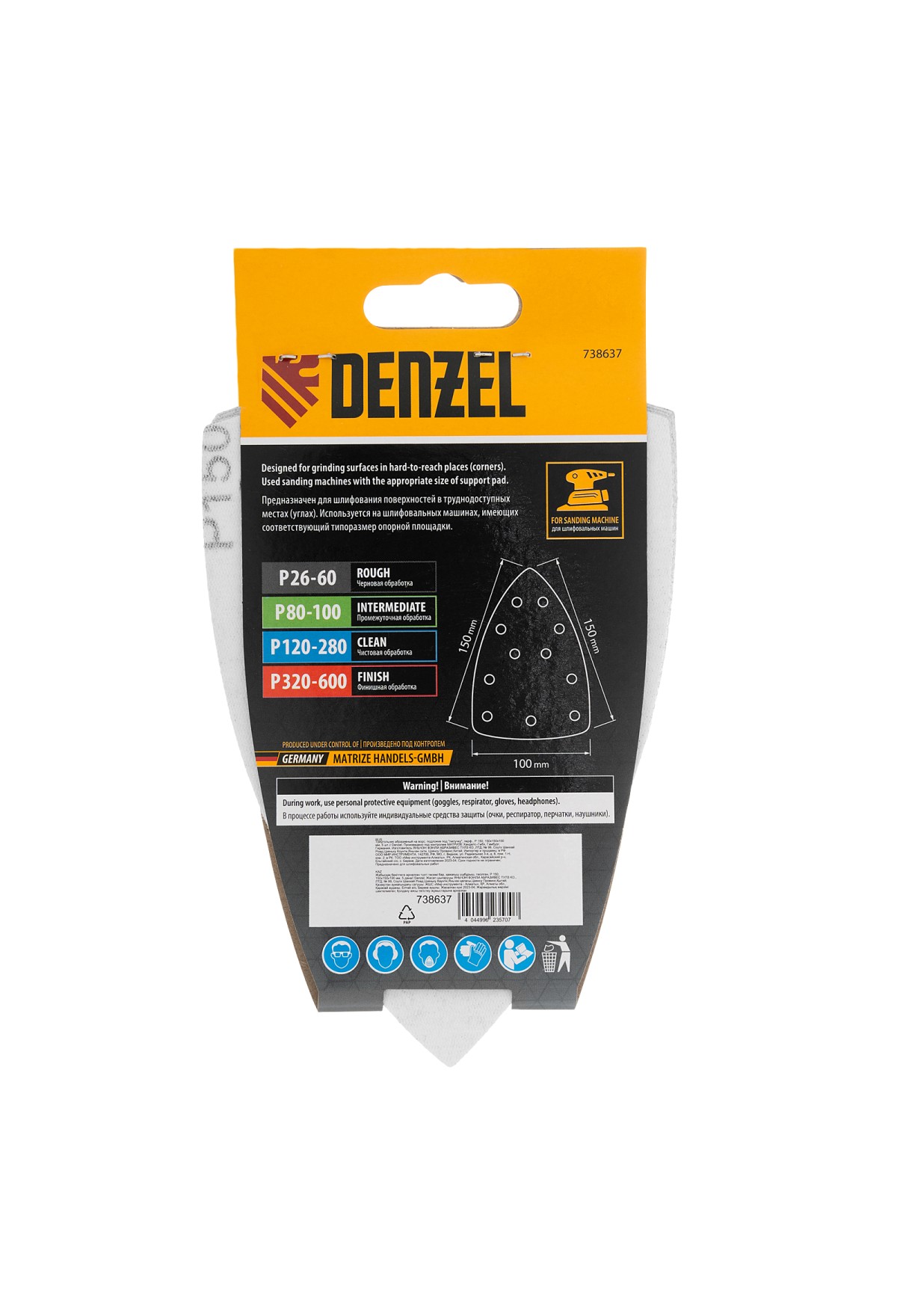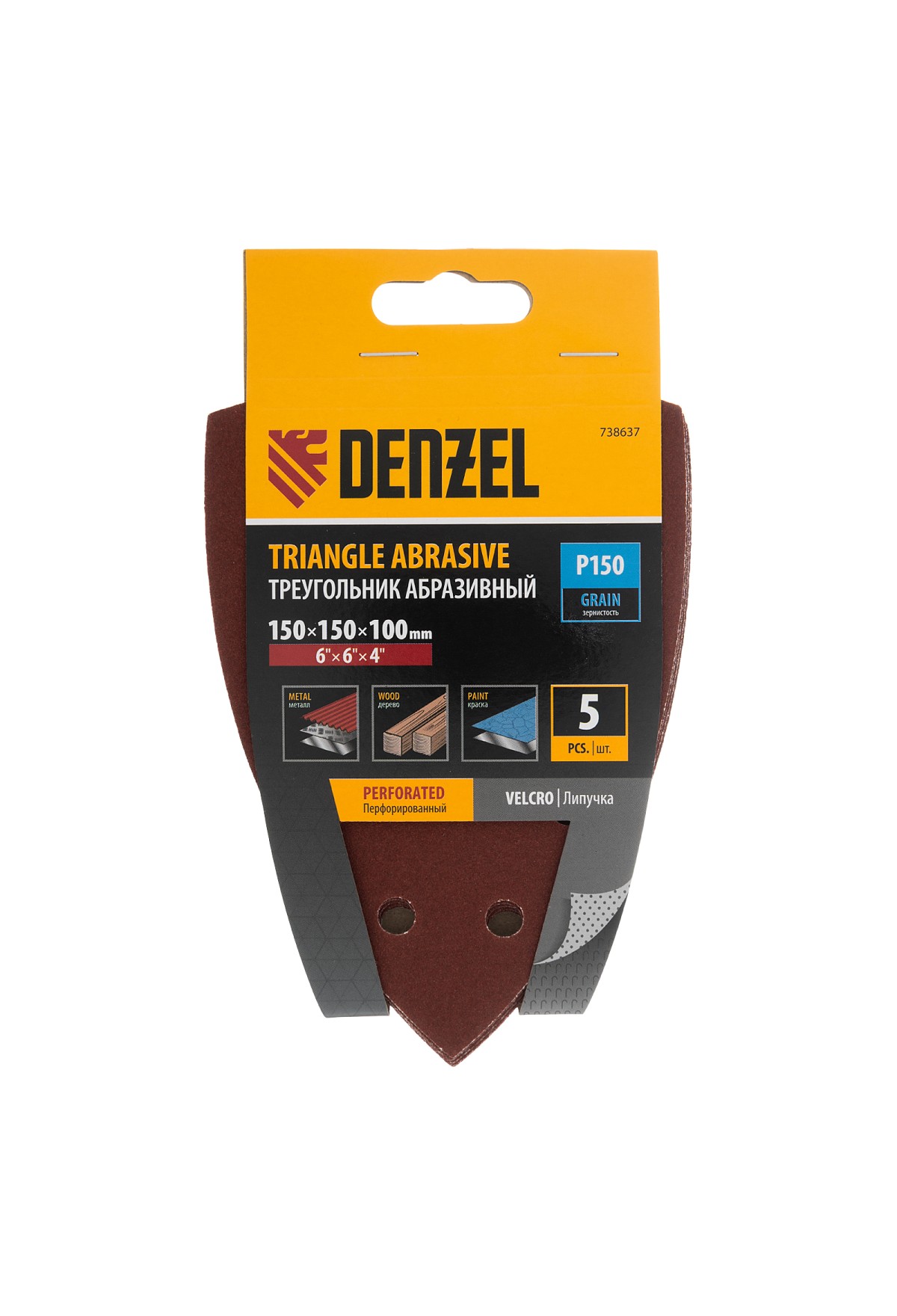 Абразивный перфорированный треугольник на ворсовой подложке «под липучку» Denzel 738637 размером 150 х 150 х 100 мм, 5 шт. в упаковке, имеет зернистость P 150 и предназначен для чистовой обработки металлических, деревянных и других деталей. Позволяет придать поверхности гладкость и подготовить ее к отделке, удобен для работы в углах и других труднодоступных местах. Треугольник совместим с плоскошлифовальной машиной Denzel 27614, также подходит для установки на другие шлифмашины с размером рабочей платформы 150 х 150 х 100 мм.