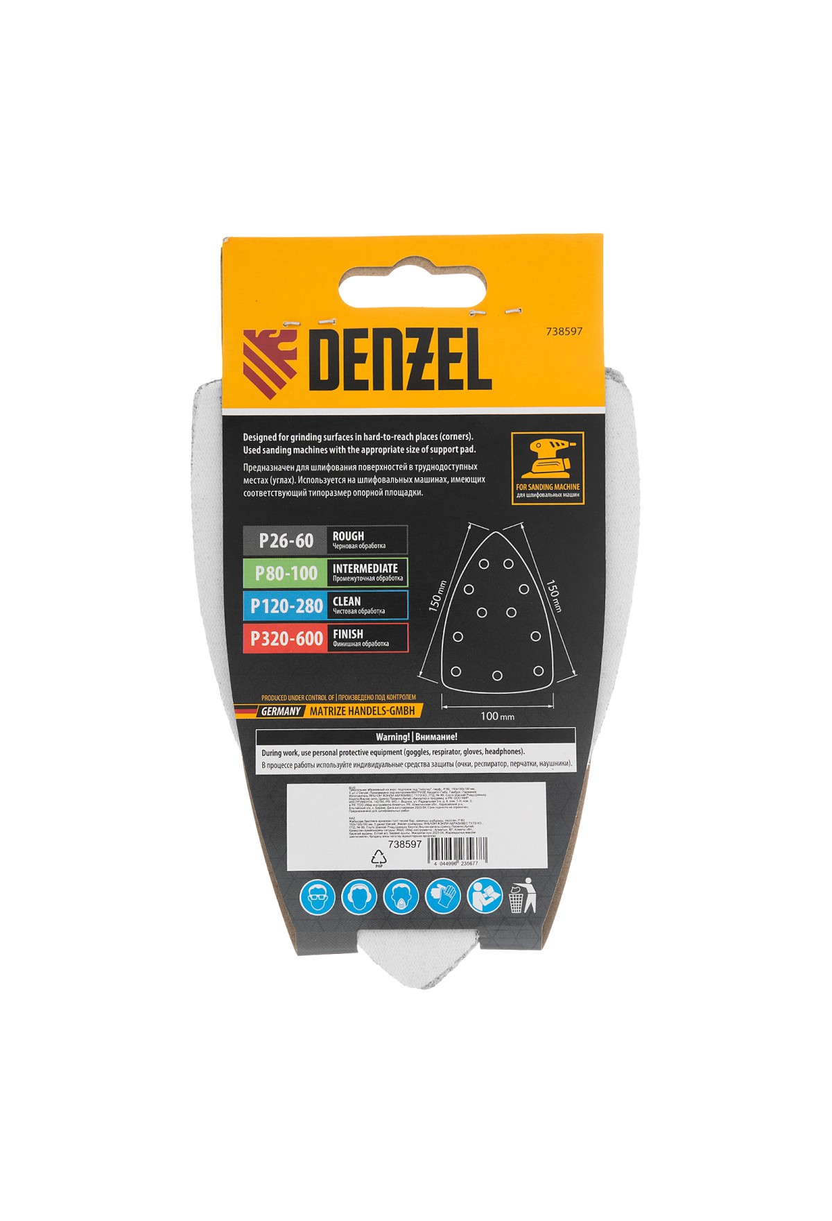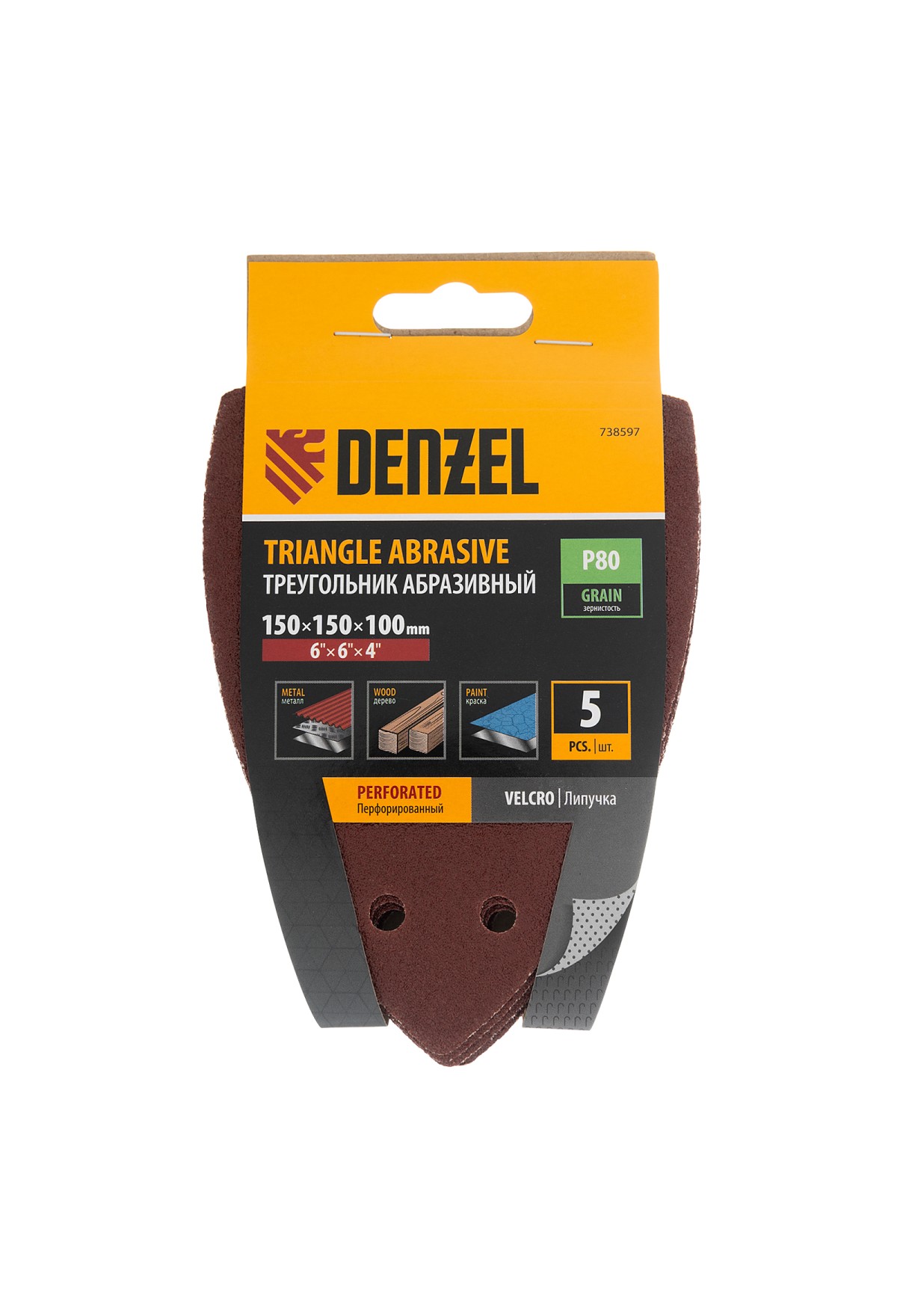 Абразивный перфорированный треугольник на ворсовой подложке «под липучку» Denzel 738597 размером 150 х 150 х 100 мм, 5 шт. в упаковке, имеет зернистость P 80 и предназначен для промежуточной обработки металлических, деревянных и других поверхностей. Позволяет удалять заусенцы, старые лакокрасочные покрытия и ржавчину, удобен для работы в углах и других труднодоступных местах. Треугольник совместим с плоскошлифовальной машиной Denzel 27614, также подходит для установки на другие шлифмашины с размером рабочей платформы 150 х 150 х 100 мм.
