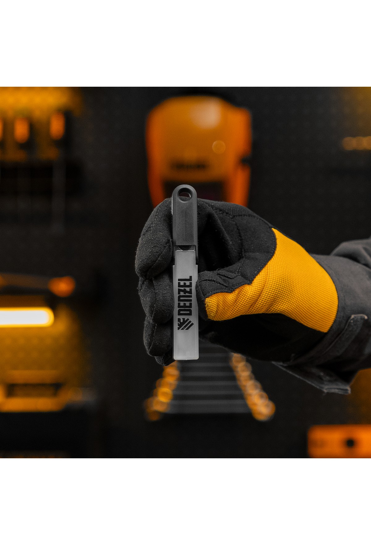 Лезвия Denzel 79300 шириной 9 мм, изготовленные из стали SK5 толщиной 0,4 мм, 10 шт. в упаковке, — сменные рабочие элементы для монтажных ножей соответствующего типоразмера. Подходят для разрезания картона, линолеума, пленки, обоев, обеспечивают легкий рез. Отличаются повышенной прочностью и долговечностью по сравнению с аналогами других торговых марок. Лезвия остро заточены и хорошо гнутся, могут применяться в бытовых целях, а также во время строительства и ремонта.