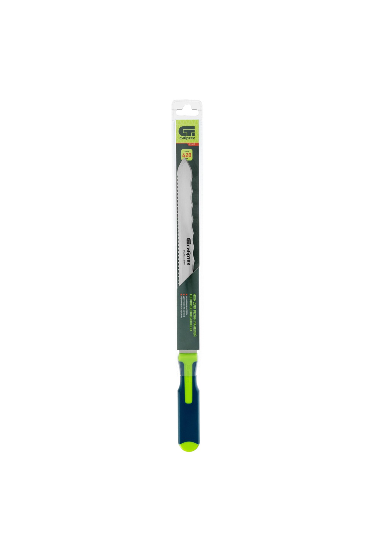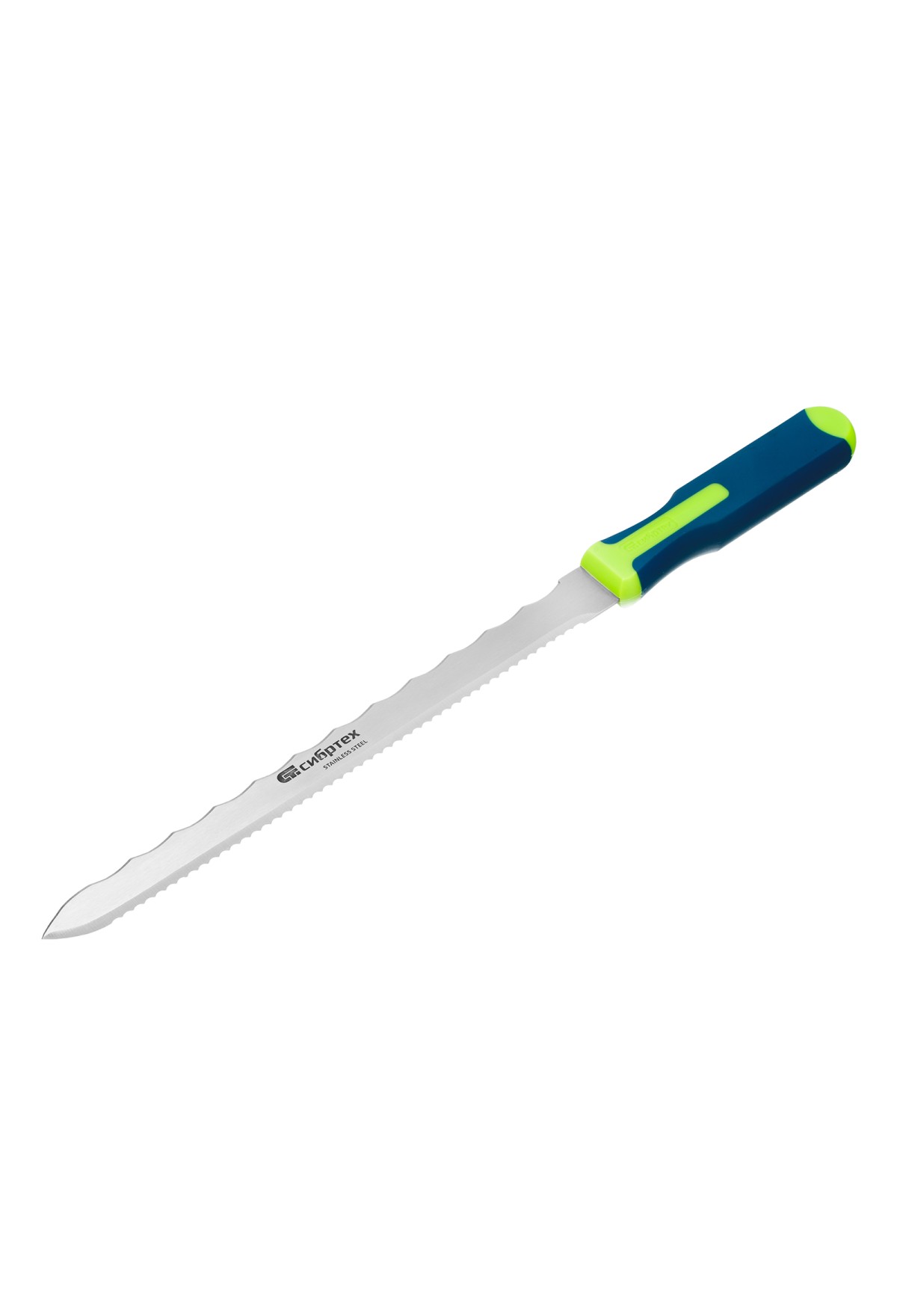 Технические характеристики Нож для резки теплоизоляционных панелей, 2-стороннее лезвие, обрезиненная рукоятка, 420 мм, лезвие 280 мм Сибртех