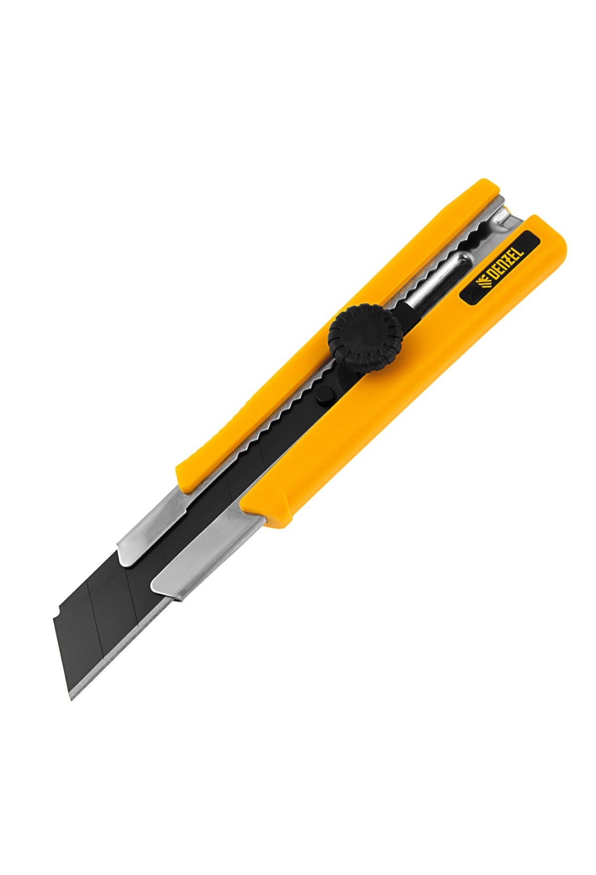 Нож Denzel 78945 выполнен в корпусе из термопластичной резины TPR, со сменным лезвием шириной 25 мм, изготовленным из стали SK4, оснащен винтовым фиксатором и металлической направляющей. Сверхострое выдвижное лезвие легко режет линолеум, ковролин, бумагу, обои, картон и другие листовые материалы. Нож рекомендован для профессионального применения, пригодится также в домашнем хозяйстве.