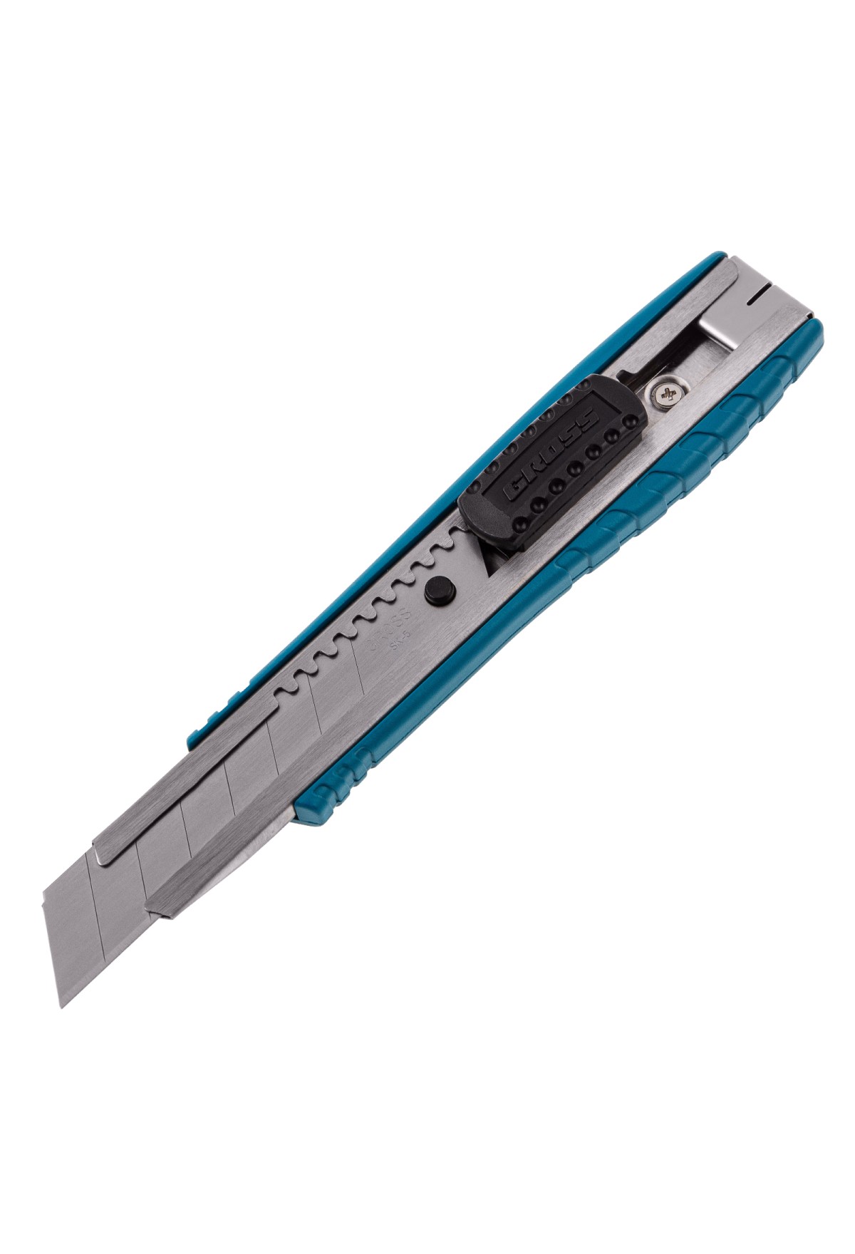 Нож, 160 мм, металлический корпус, выдвижное сегментное лезвие 18 мм (SK-5), металлическая направляющая, клипса для ремня Gross