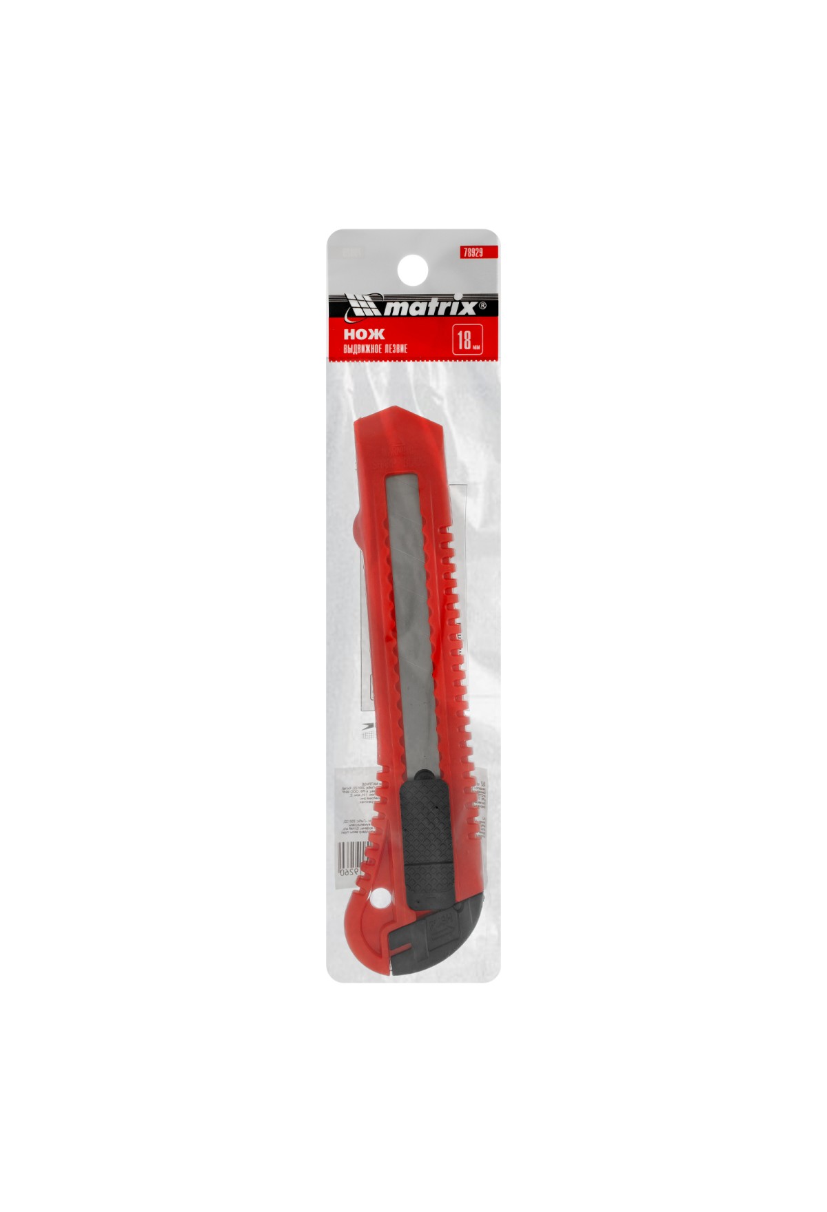 Нож Matrix 78929 с выдвижным лезвием шириной 18 мм позволяет резать бумагу, картон, кожу и другие нетвердые материалы. За счет выдвижной конструкции он удобен и безопасен в использовании. Инструмент применяется в различных сферах: на стройке, в офисе, в домашнем обиходе и частных мастерских.