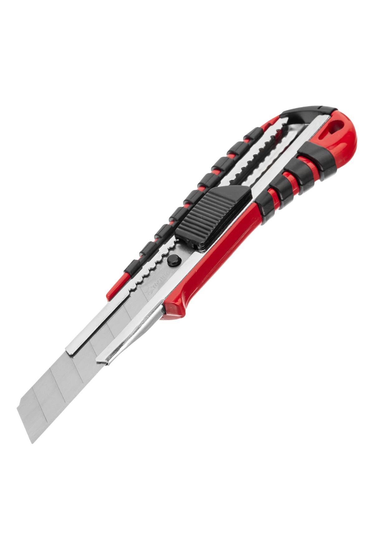 Технические характеристики Нож, 18 мм, выдвижное лезвие металлическая направляющая, эргономичная двухкомпонентная рукоятка Matrix