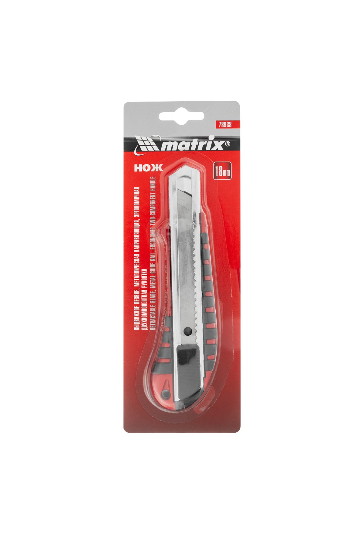 Нож, 18 мм, выдвижное лезвие металлическая направляющая, эргономичная двухкомпонентная рукоятка Matrix