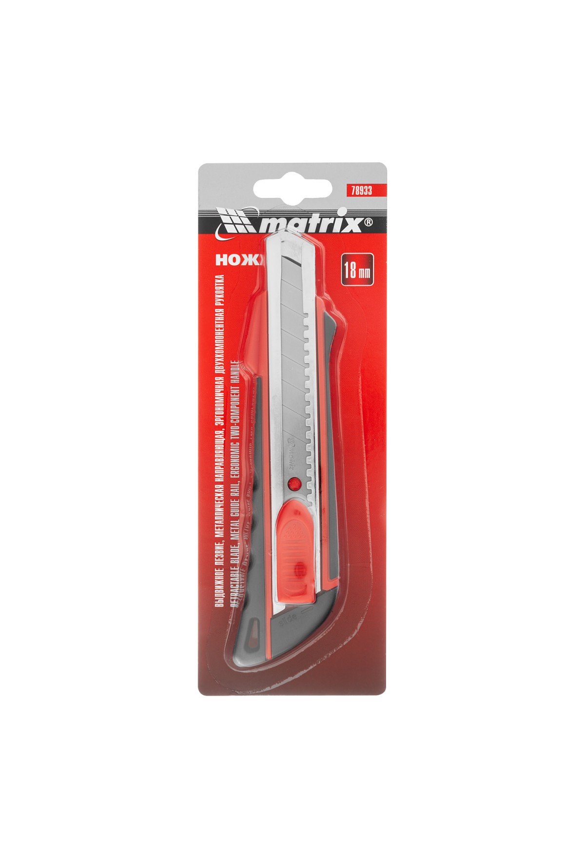 Нож, 18 мм, выдвижное лезвие, металлическая направляющая, эргономичная двухкомпонентная рукоятка Matrix