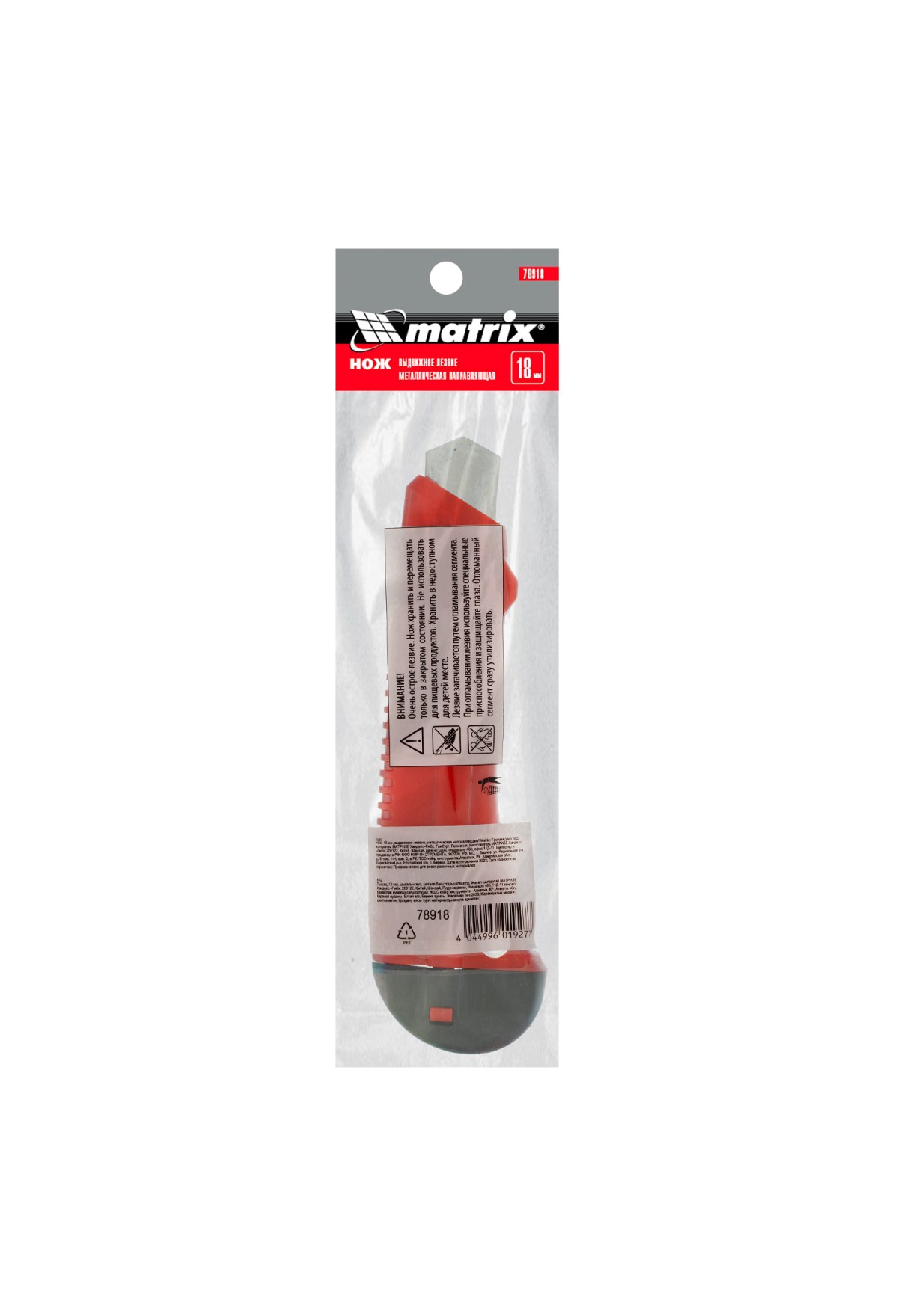 Нож, 18 мм, выдвижное лезвие, металлическая направляющая Matrix