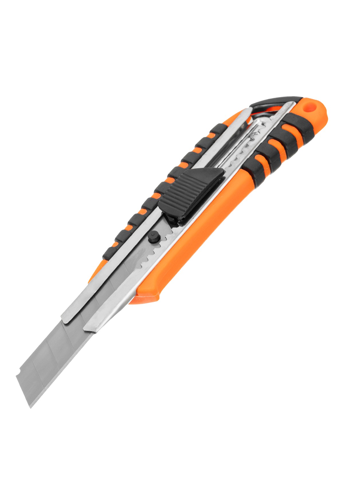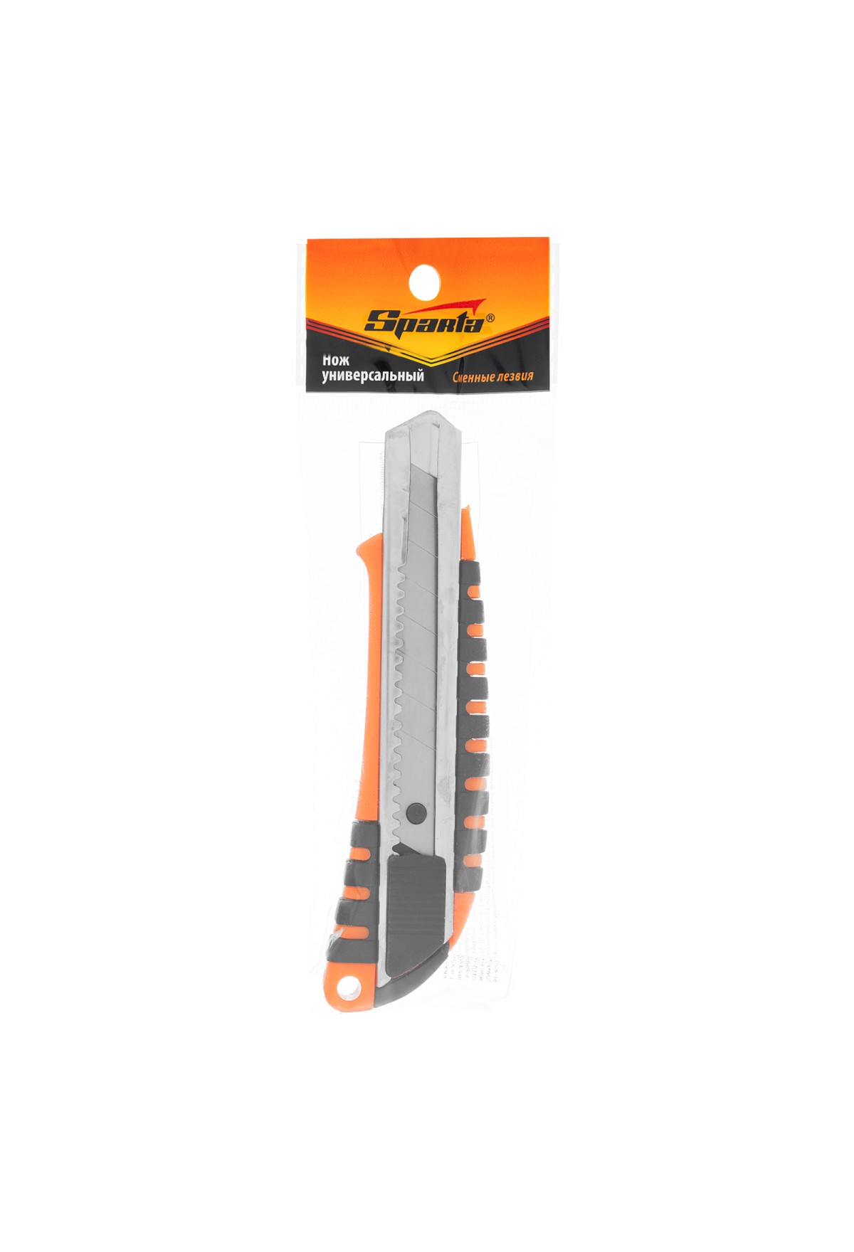 Нож, 18 мм, выдвижное лезвие, металлическая направляющая, пластиковый двухкомпонентный корпус Sparta