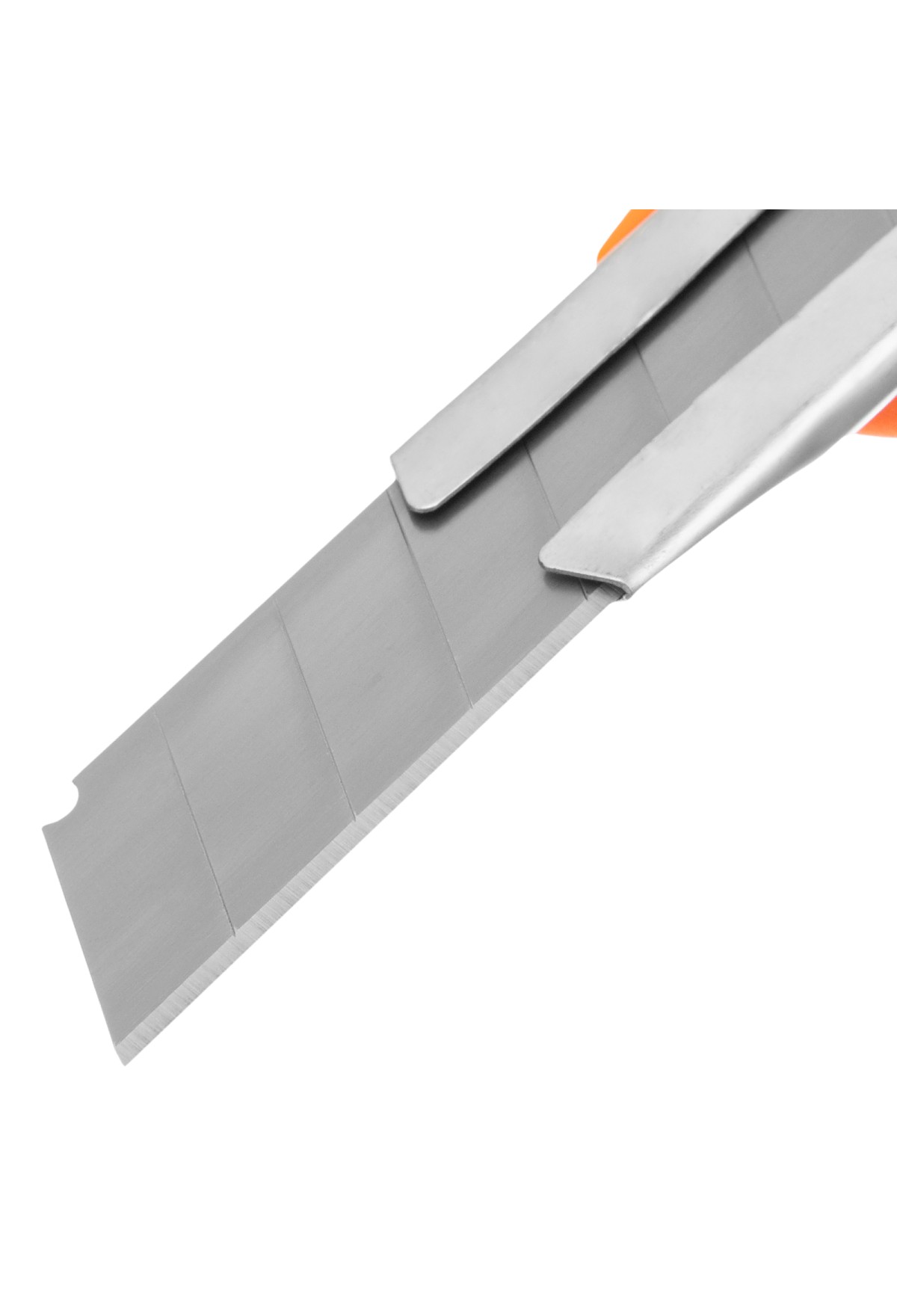 Технические характеристики Нож, 18 мм, выдвижное лезвие, металлическая направляющая, пластиковый двухкомпонентный корпус Sparta