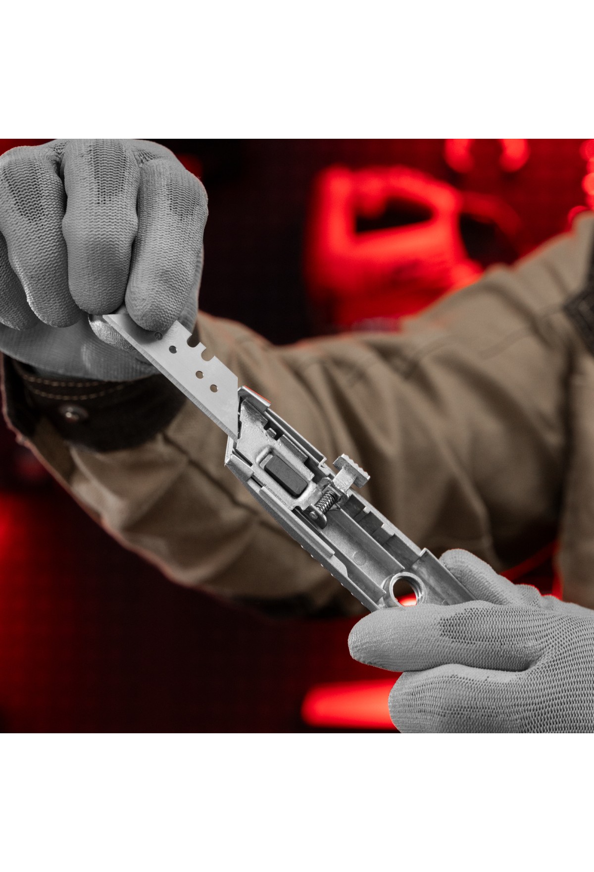 Нож Matrix 78964 в металлическом корпусе, с выдвижным трапециевидным лезвием, применяется при резке бумаги, картона, кожи, а также для раскройки линолеума или обоев. Инструмент успешно справляется с этой работой благодаря стальному лезвию шириной 19 мм. Используется в профессиональной сфере и в быту.