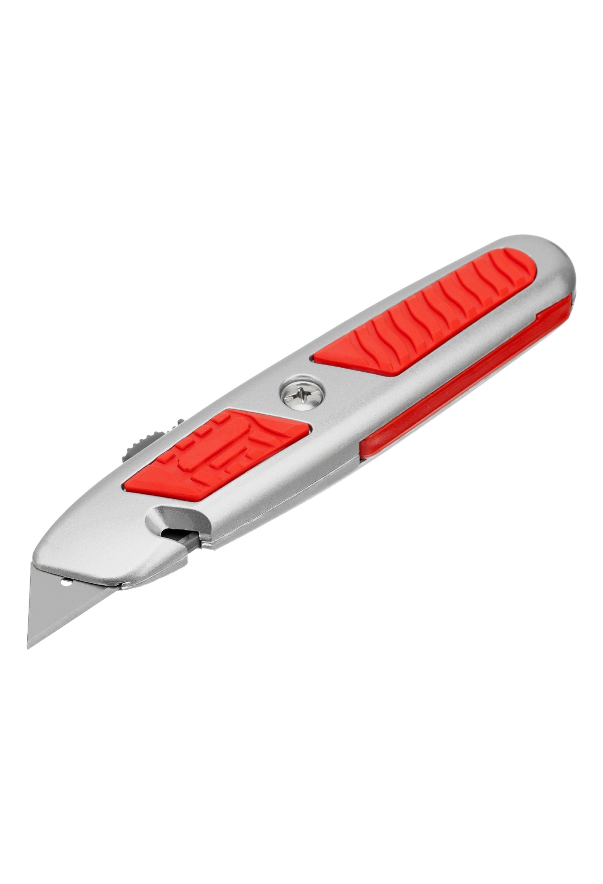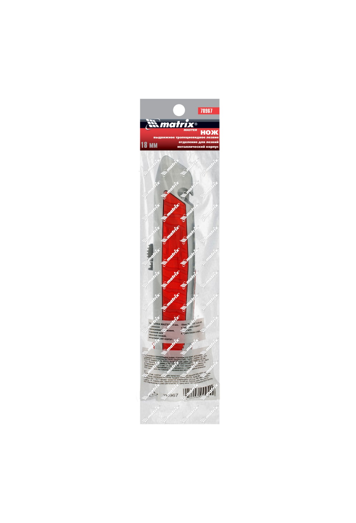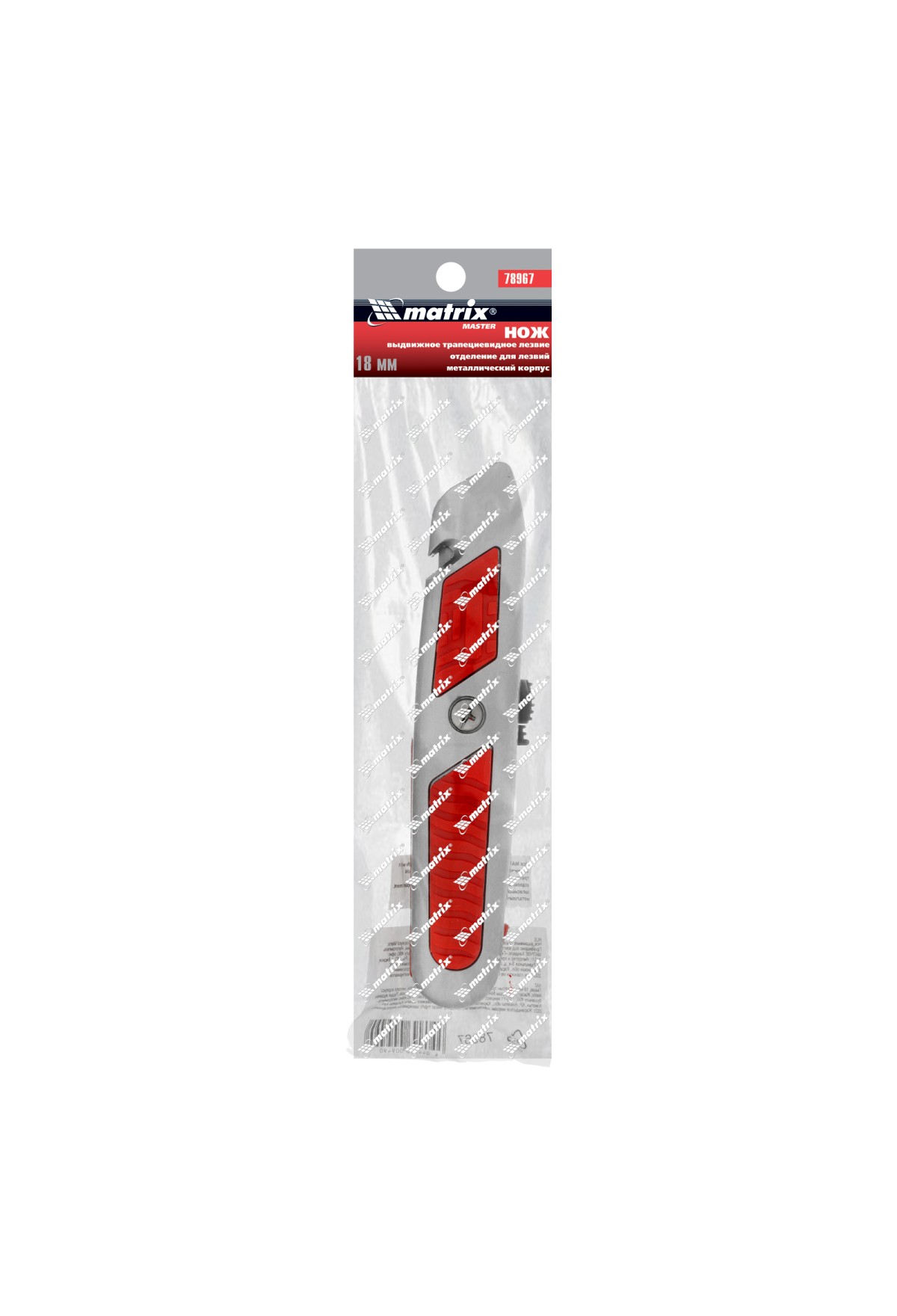 Нож Matrix 78967 с выдвижным трапециевидным лезвием и отделением для лезвий, в металлическом корпусе, режет бумагу, картон, кожу, линолеум и обои. Может применяться в качестве стропореза: для этого в корпусе предусмотрена специальная выемка. Лезвие сменное, артикул совместимых расходников 793555. Металлический корпус выдерживает значительные усилия. Нож будет полезен во время проведения строительных и отделочных работ, а также пригодится в быту.