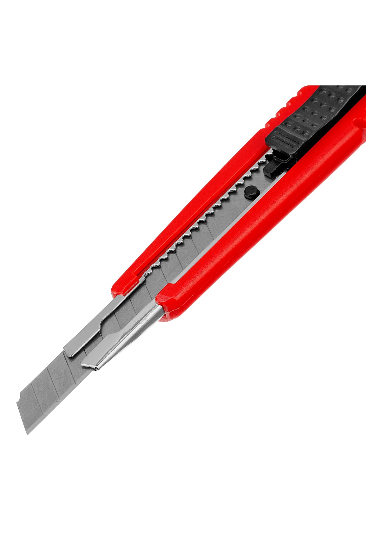 Нож Matrix 78909 с выдвижным лезвием шириной 9 мм и металлической направляющей подходит для профессионального и бытового использования. С его помощью можно разрезать картон, бумагу, скотч, кожу или обои. Инструмент прослужит долго, т.к. металлическая направляющая увеличивает его прочность.