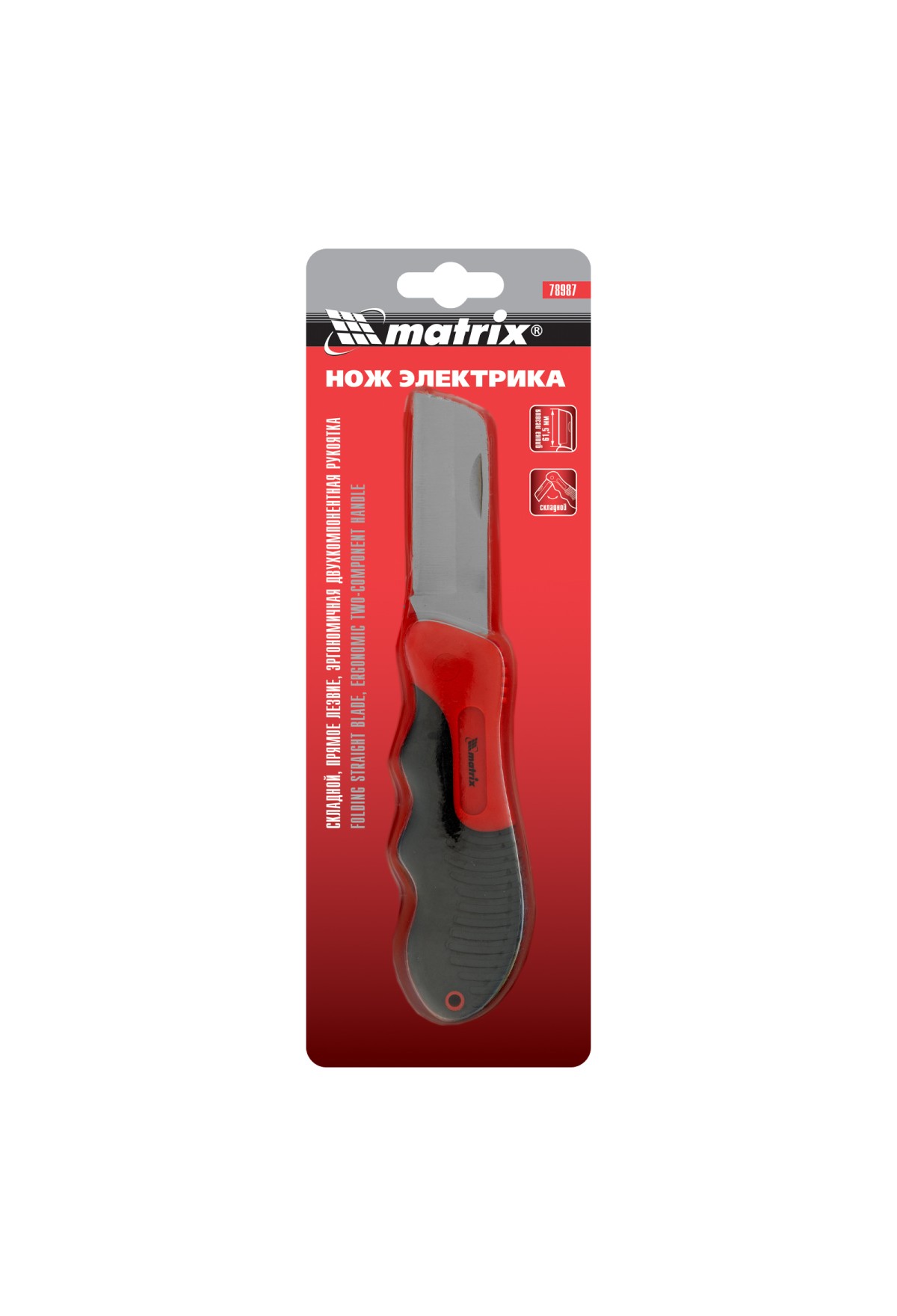 Нож электрика, складной, прямое лезвие, эргономичная двухкомпонентная рукоятка Matrix