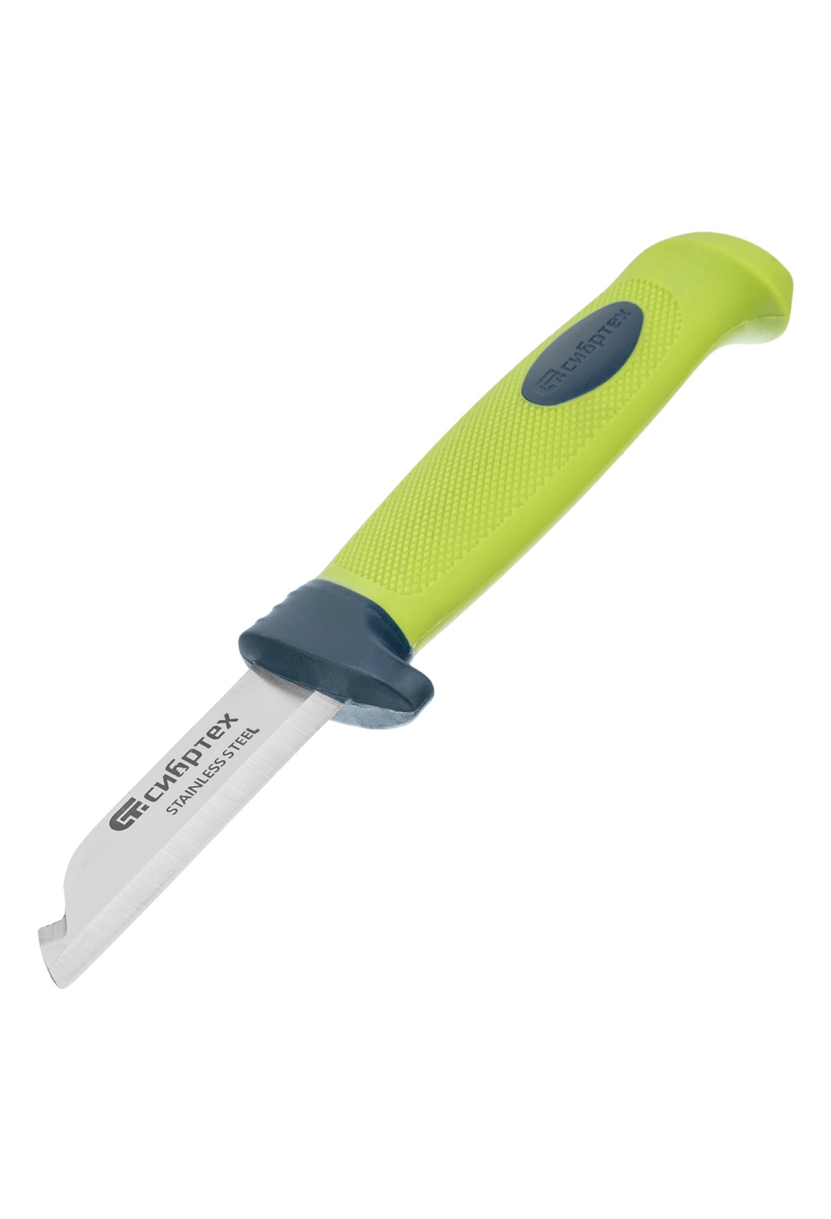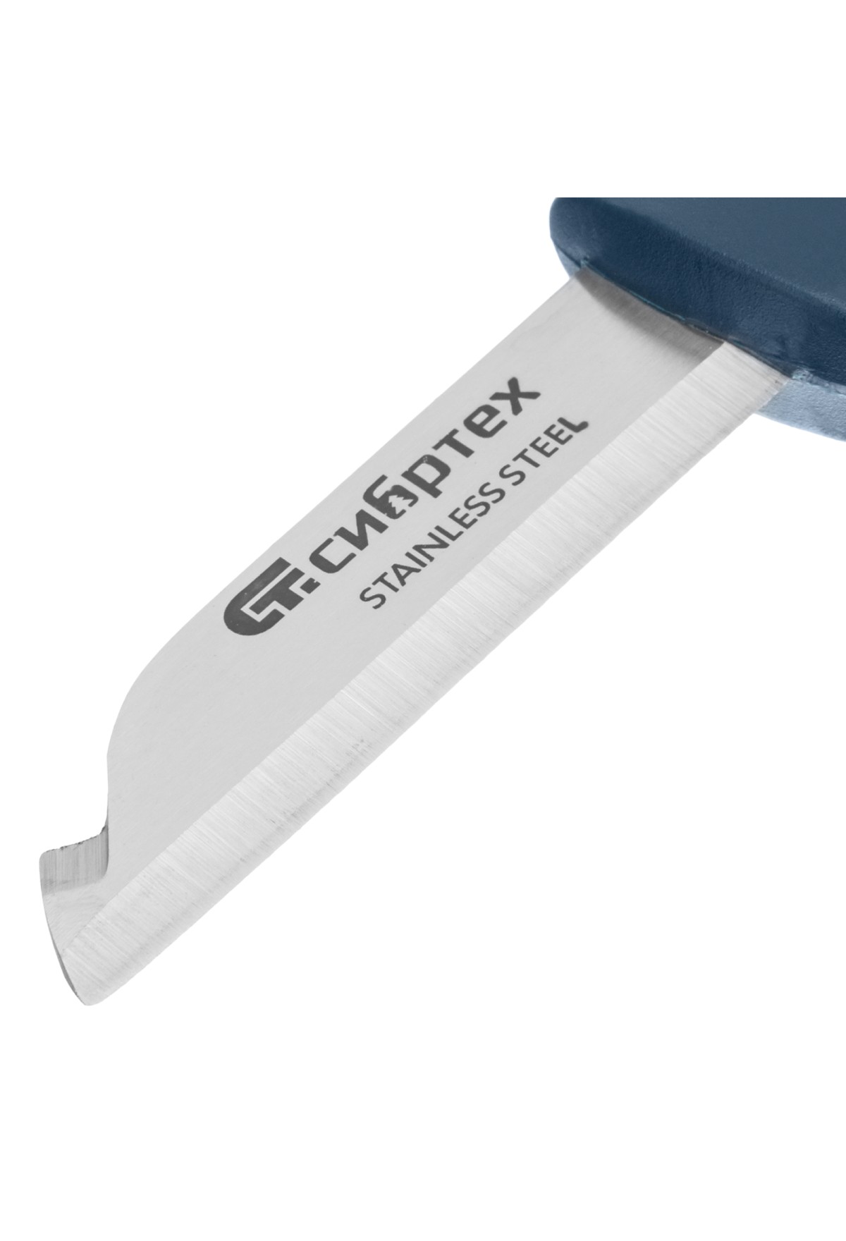 Технические характеристики Нож монтажника с чехлом, обрезиненная рукоятка, 190 мм, лезвие 67 мм Сибртех