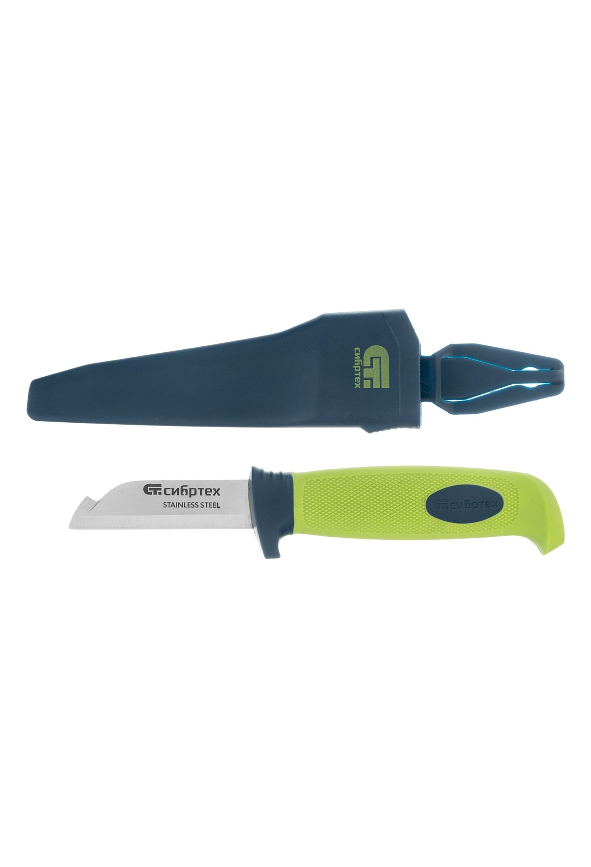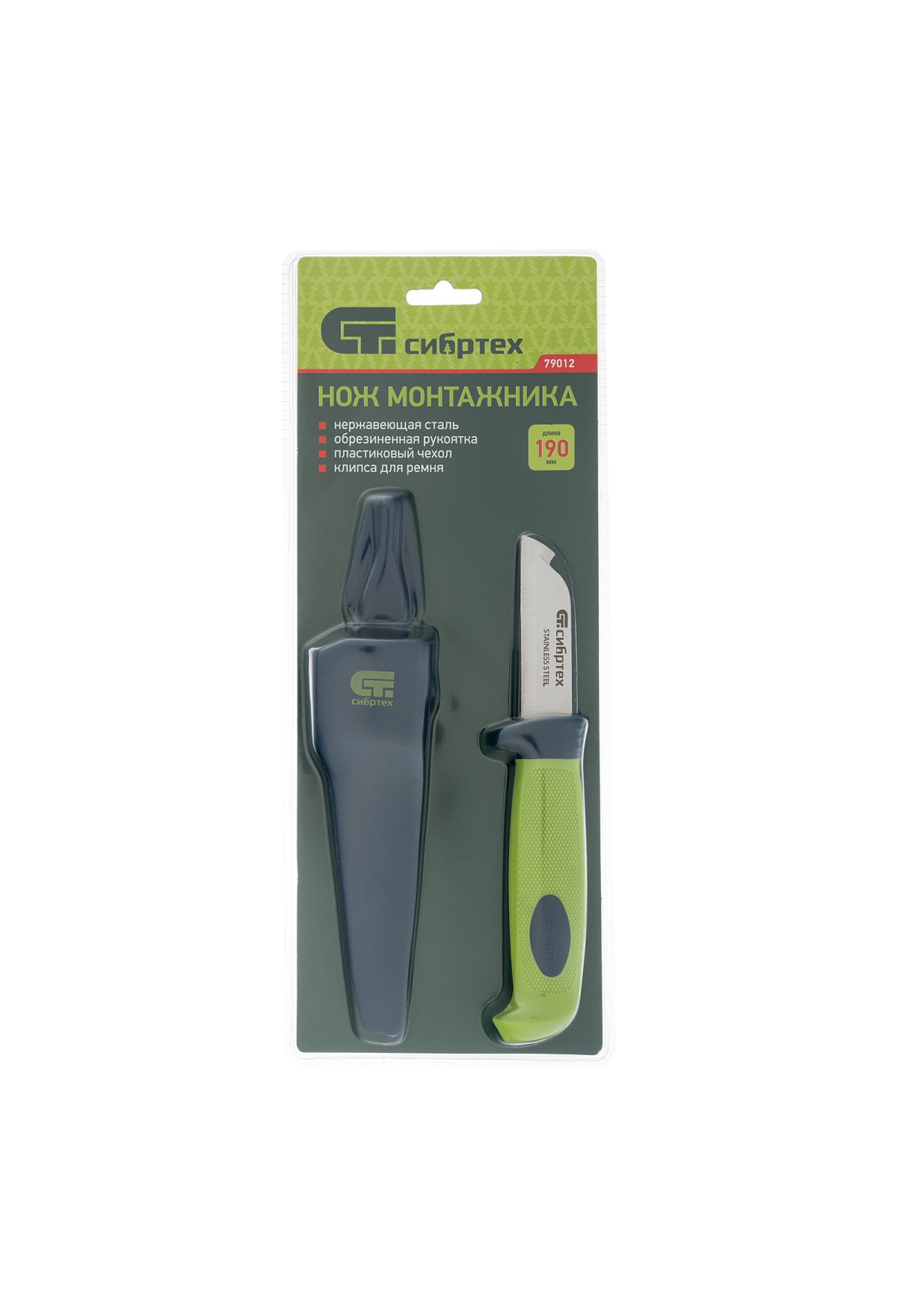 Нож монтажника с чехлом, обрезиненная рукоятка, 190 мм, лезвие 67 мм Сибртех