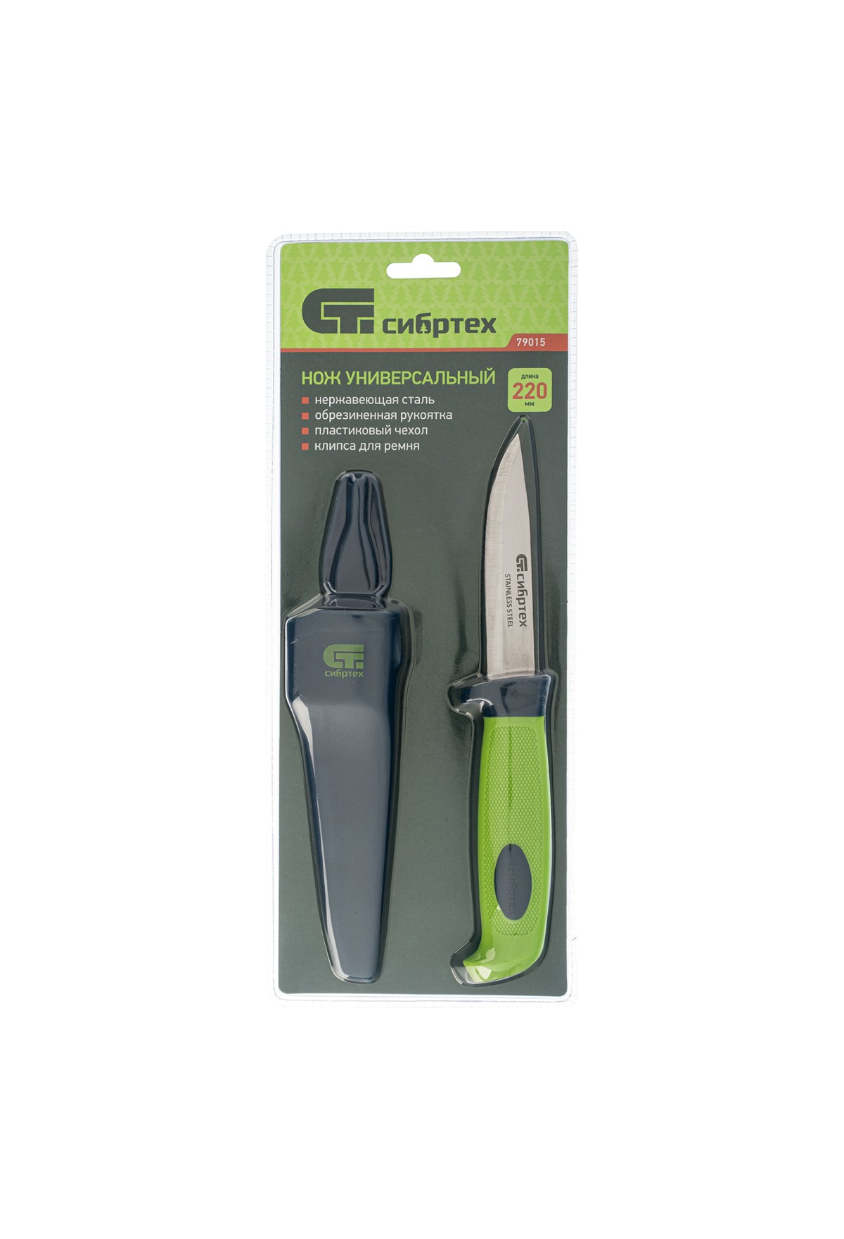 Нож универсальный с чехлом, обрезиненная рукоятка, 220 мм, лезвие 100 мм Сибртех