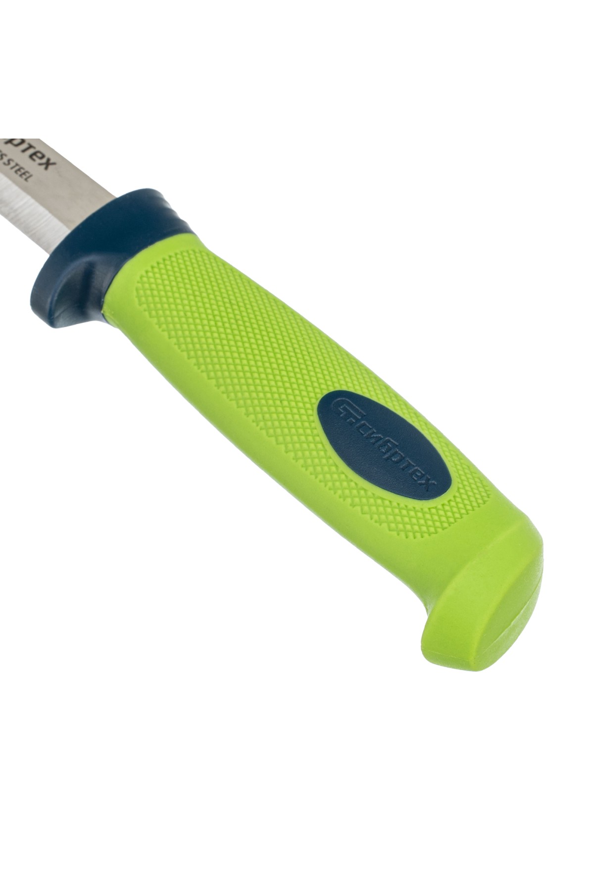 - Обрезиненная рукоятка повышает удобство работы и обеспечивает надежный хват, т.к. не проскальзывает в руке.