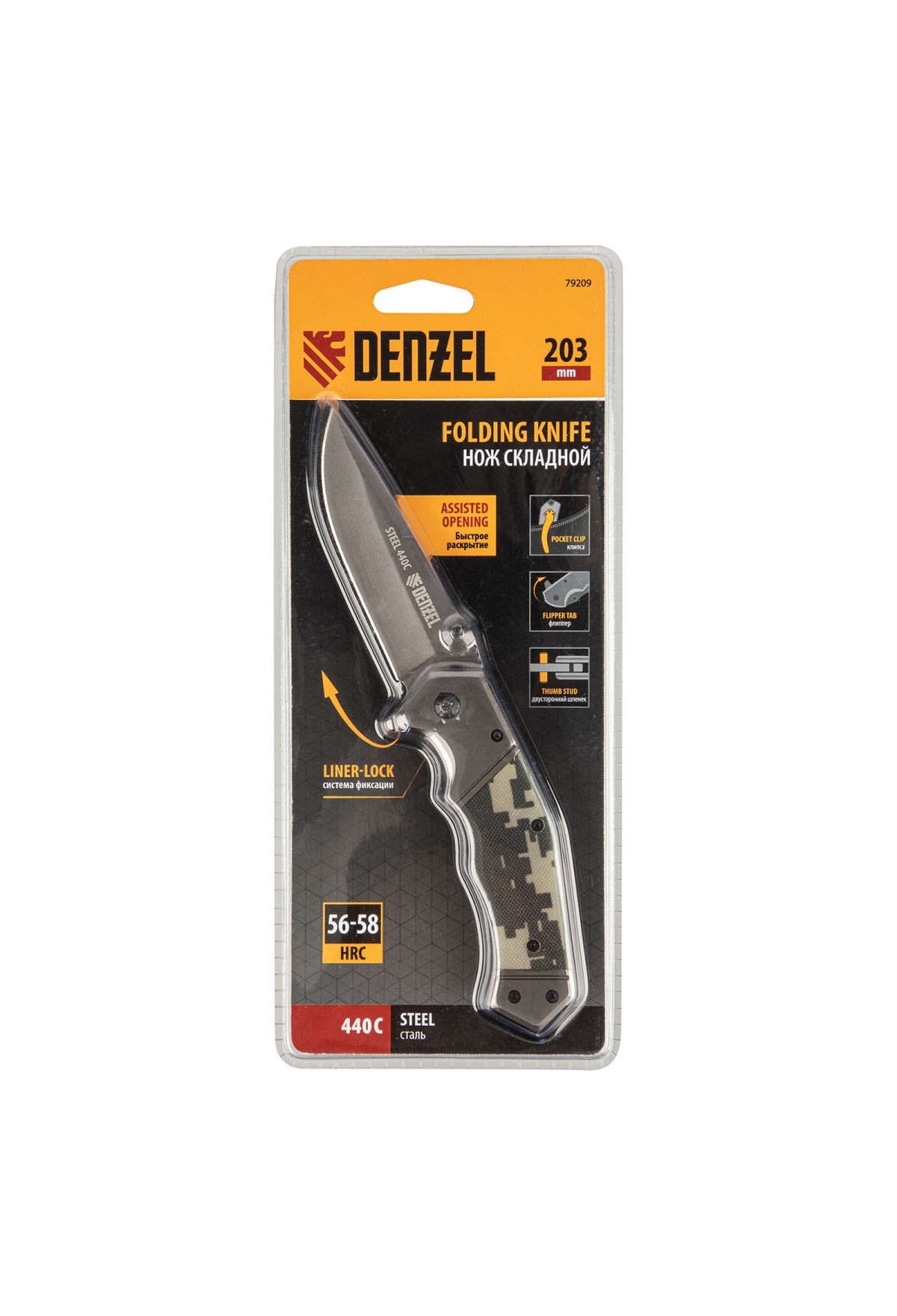 Нож складной, многоцелевой, системы Liner-Lock, с накладкой G10 на эргономичной рукоятке Denzel
