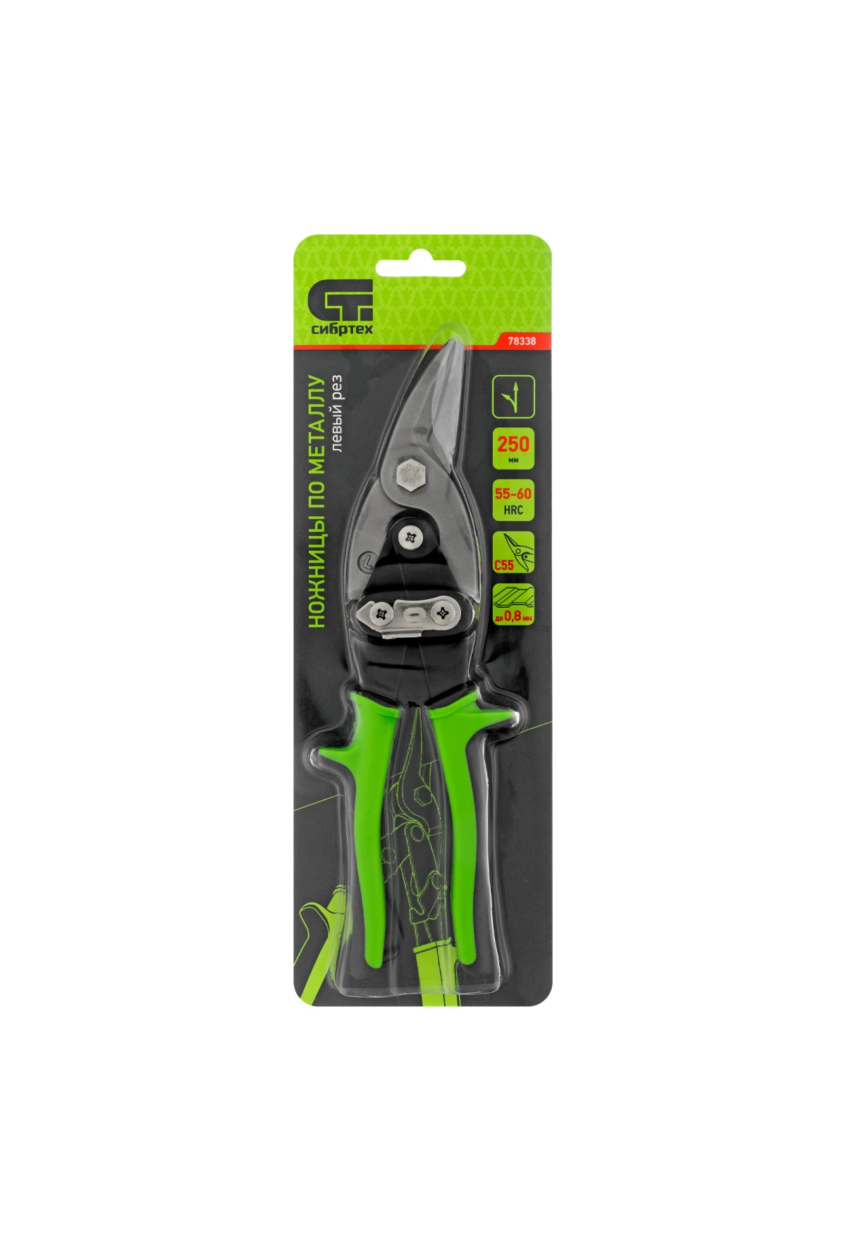 Ножницы Сибртех 78338 длиной 250 мм, из стали С55, с двухкомпонентными рукоятками, используются для левого реза профильного и листового металла. Предназначены для проведения ремонтных и монтажных работ с материалами толщиной до 0,8 мм.