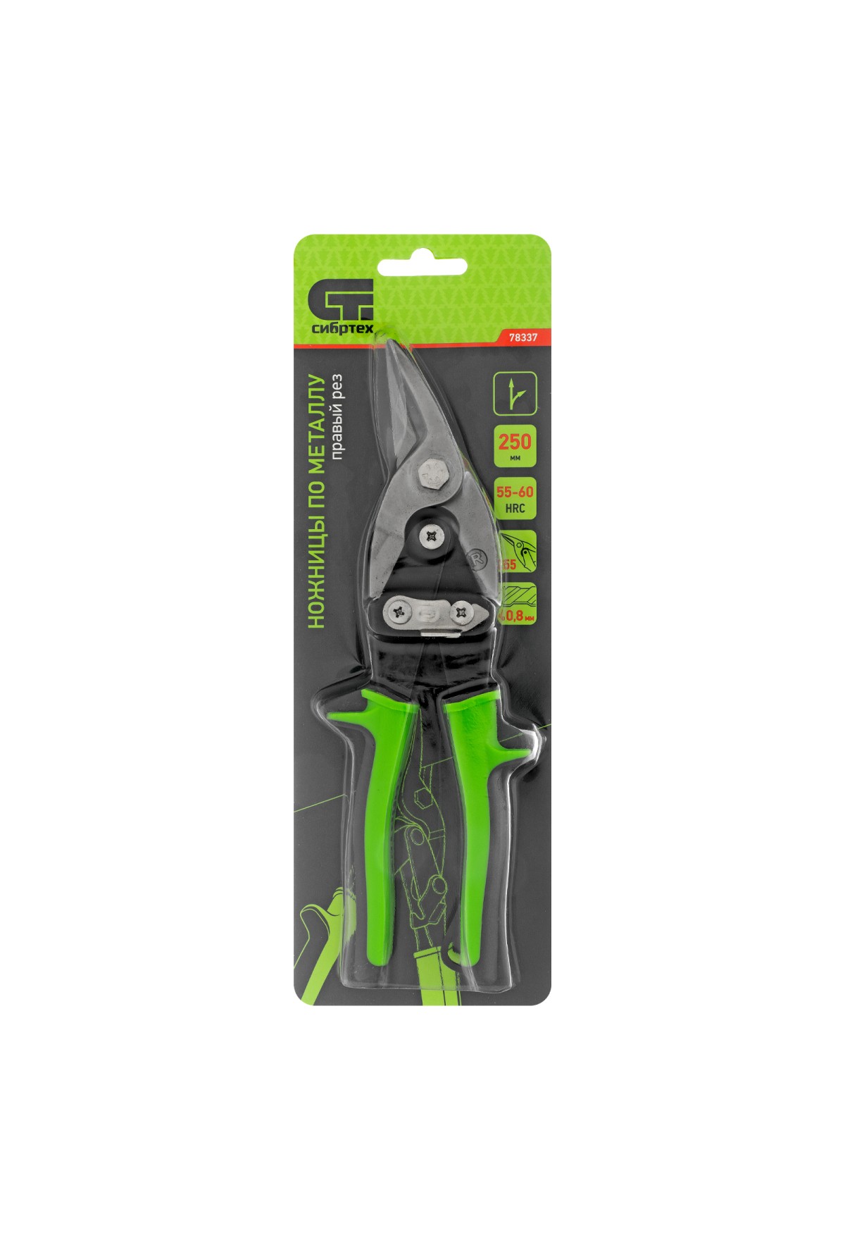 Ножницы Сибртех 78337 длиной 250 мм, из стали С55, с двухкомпонентными рукоятками, используются для правого реза профильного и листового металла. Предназначены для проведения ремонтных и монтажных работ с материалами толщиной до 0,8 мм.