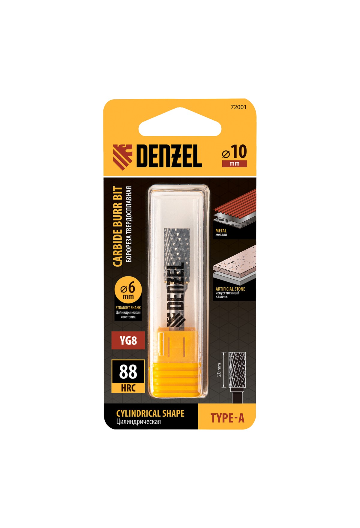 Твердосплавная борфреза Denzel 72001 с цилиндрической рабочей частью (тип A), диаметром 10 мм, используется для работ по металлу (закаленной и нержавеющей стали, латуни, меди, бронзе, чугуну, титану). Подходит также для обработки искусственного камня и металлокерамики. Предназначена для завершающей обработки и подгонки форм и поверхностей: шлифовки, зачистки сварных швов, удаления заусенцев, снятия фасок, разделки кромок. Оснастка устанавливается на прямошлифовальную машину или дрель.
