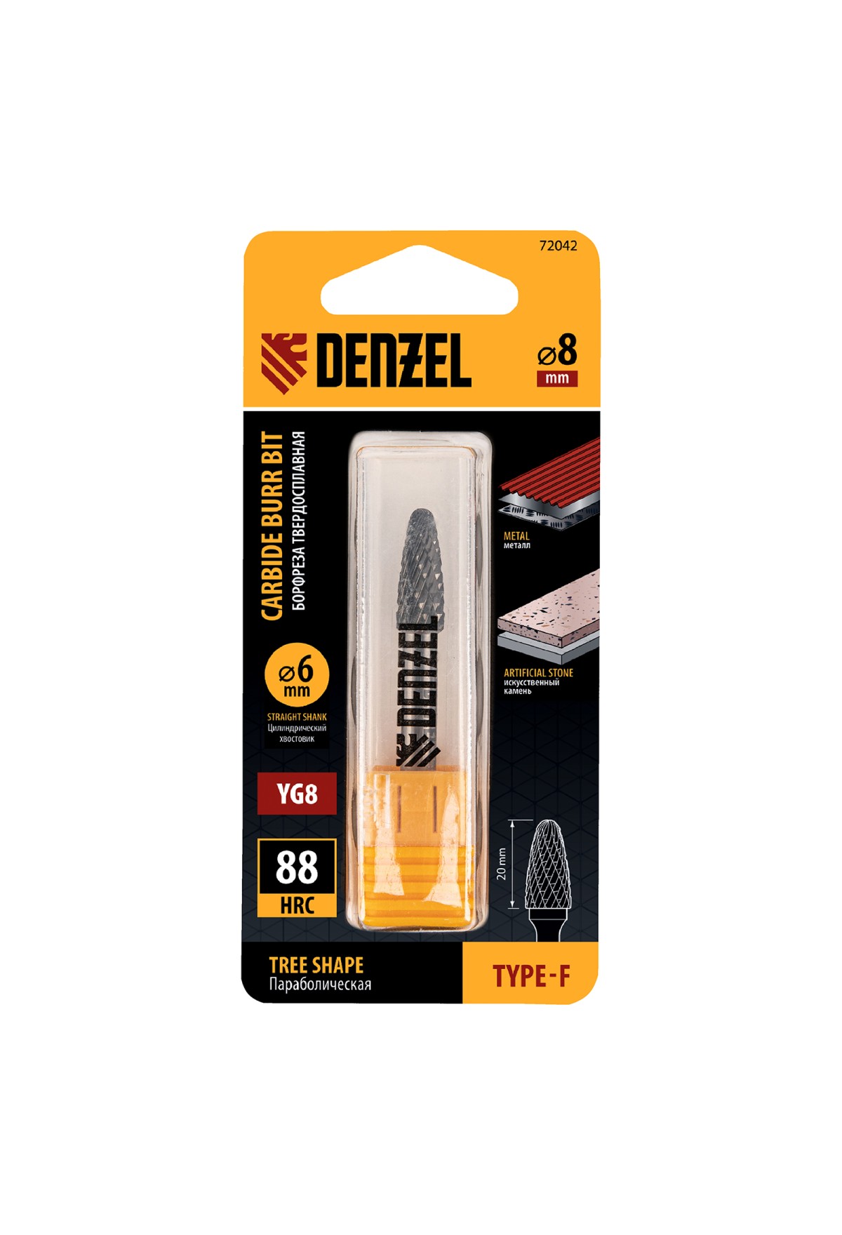 Твердосплавная борфреза Denzel 72042 с параболической режущей частью (тип F), диаметром 8 мм, устанавливается на дрель или прямошлифовальную машину и предназначена для шлифовальных работ по металлу. Позволяет обрабатывать закаленную и нержавеющую сталь, латунь, бронзу, медь, чугун, титан, а также металлокерамику и искусственный камень. Рабочая часть в форме параболы с закругленной головкой удобна для шлифовки формованных деталей с плавными контурами и обработки сопряжений. Также при помощи борфрезы можно разделывать кромки, снимать заусенцы, обрабатывать сварные швы. Подходит оснастка и для восстановления гравировки.