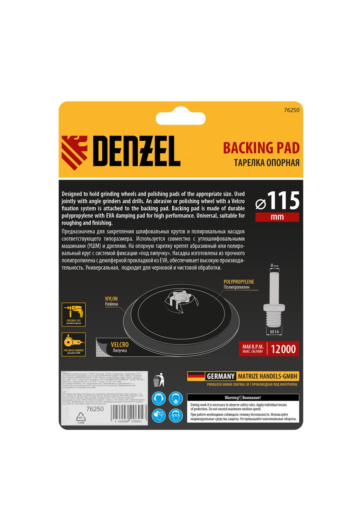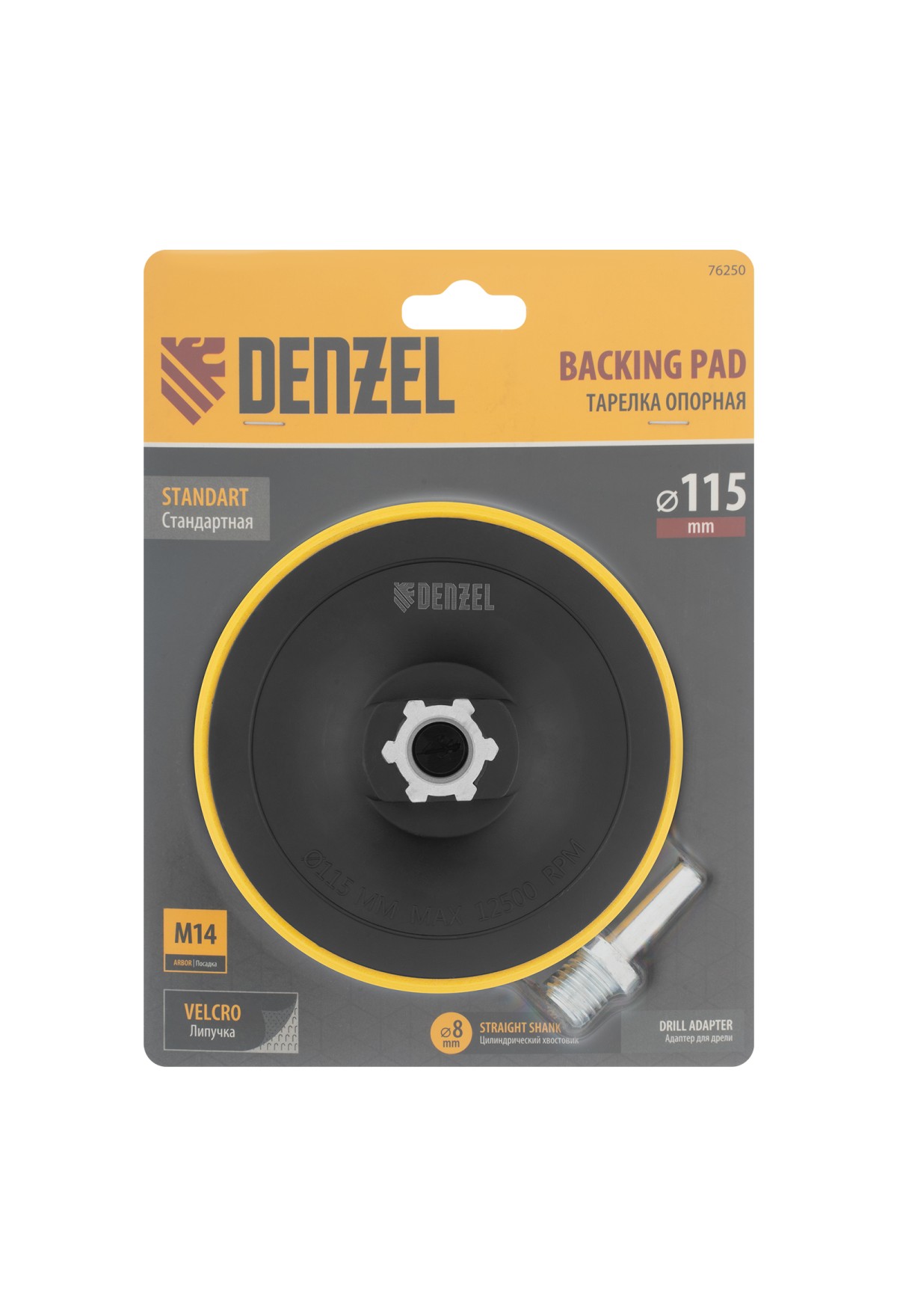 Тарелка опорная для дрели и УШМ с липучкой, 115 мм, стандартная, с адаптером c М14 на d8 Denzel