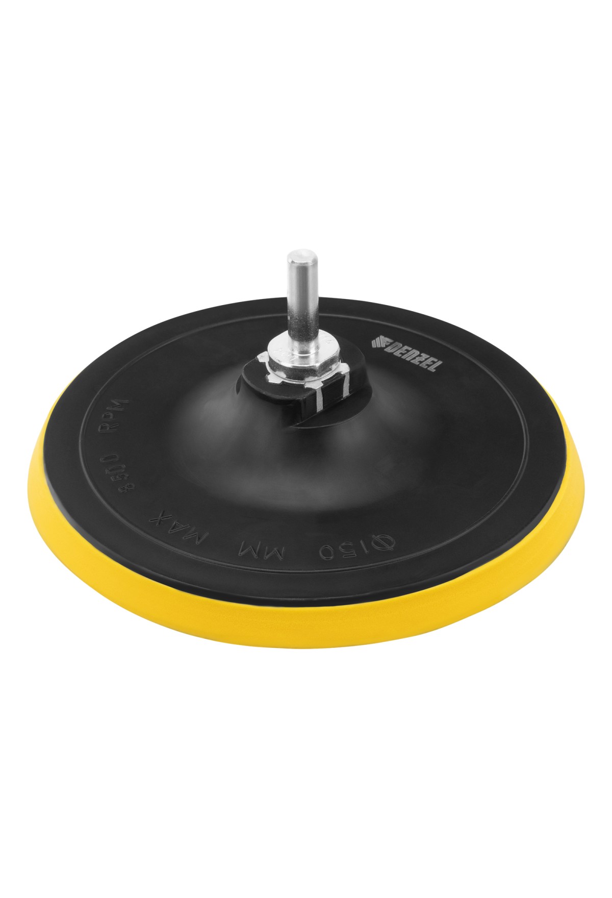 Тарелка опорная Denzel 76252 диаметром 150 мм, с липучкой и адаптером с М14 на d8, стандартная, устанавливается на дрель или углошлифовальную машину (УШМ). Используется для крепления абразивных или полировальных кругов на ворсовой основе, позволяет подготовить поверхность для дальнейшей обработки или придать ей финишную гладкость.