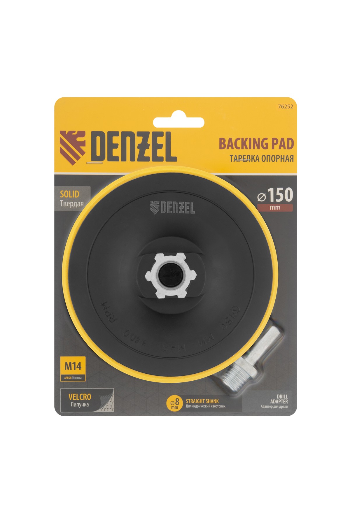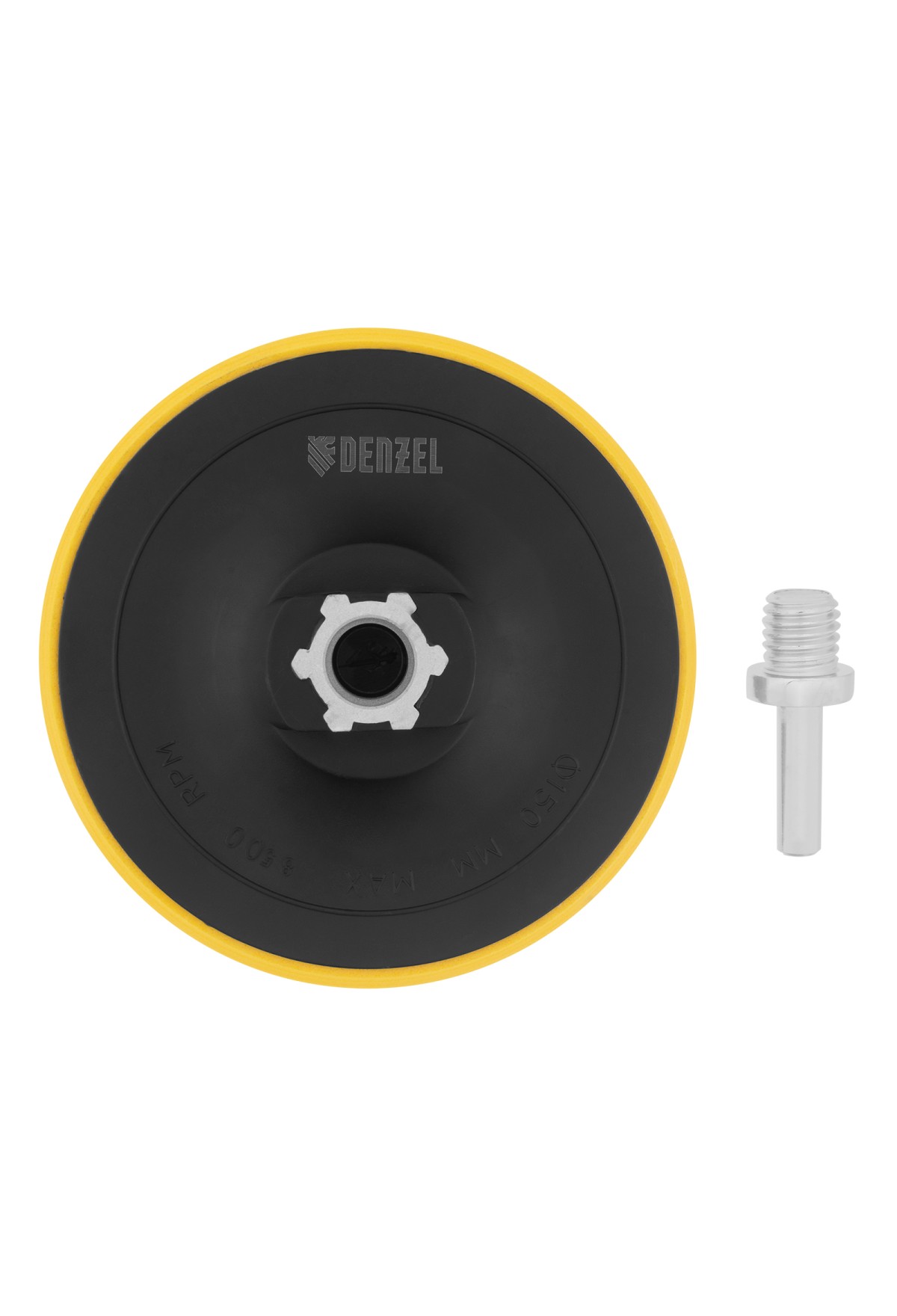Тарелка опорная для дрели и УШМ с липучкой, 150 мм, стандартная, с адаптером c М14 на d8 Denzel
