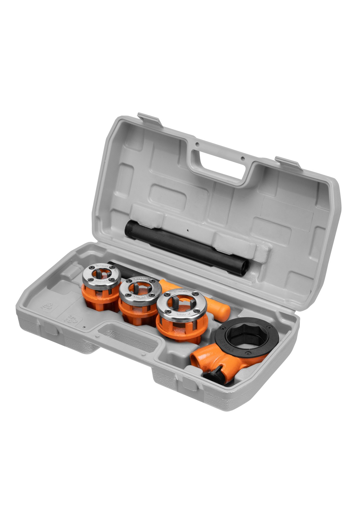 Набор Sparta 773335 включает в себя 6 предметов: клуппы наиболее востребованных размеров 1/2 дюйма, 3/4 дюйма, 1 дюйм, плашкодержатель с трещоткой и удлинителем, упакованные в пластиковый кейс. Пригодится частным мастерам при необходимости нарезания внешней резьбы на трубах или починки старой. Плашкодержатель оснащен трещоточным механизмом, который наиболее эффективно передает рабочее усилие, а также позволяет работать в труднодоступных местах.