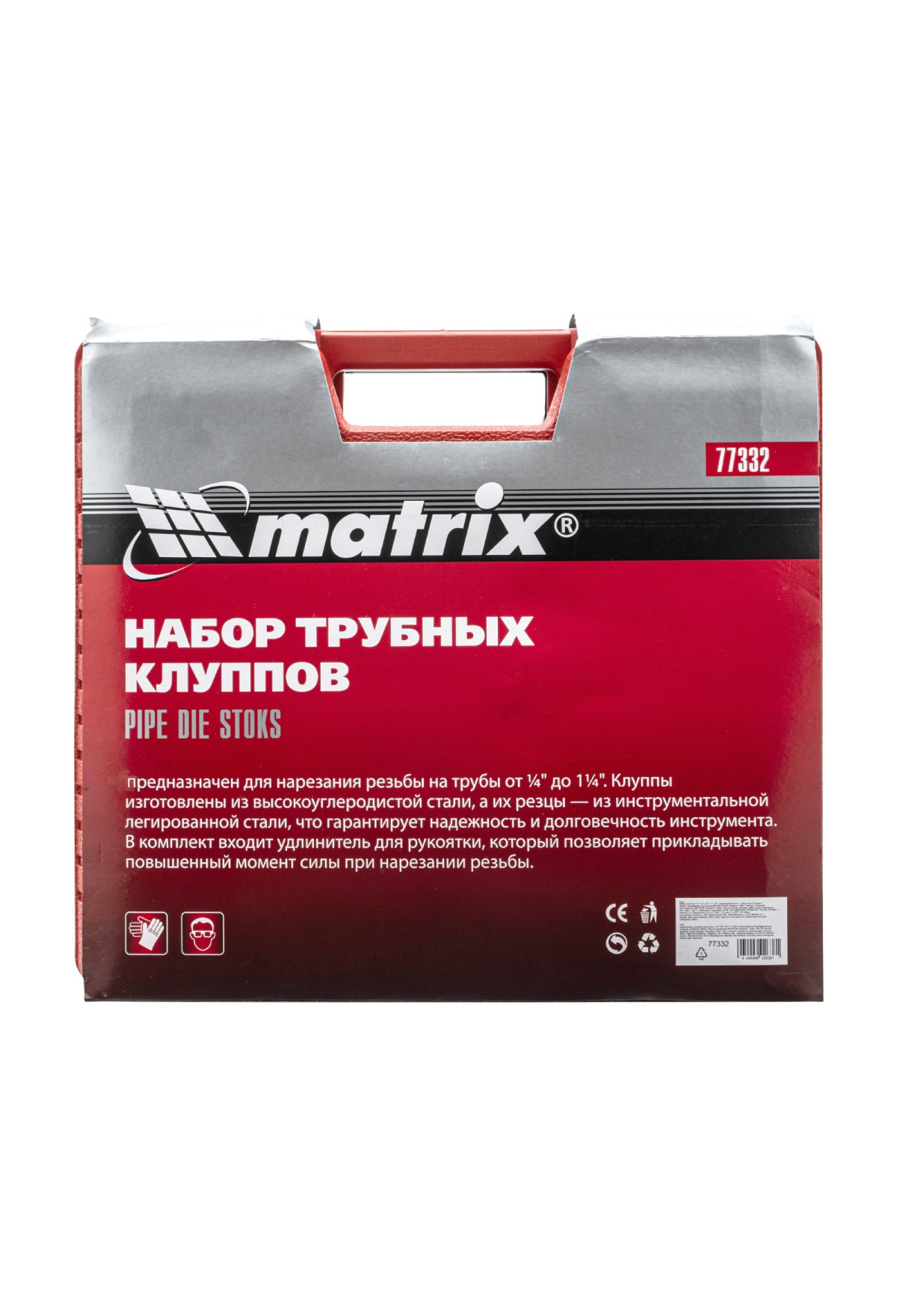 Технические характеристики Набор клуппов 1/4-1/2-3/4-1-1.25"+ плашкодержатель с трещоткой, 8 предметов Matrix