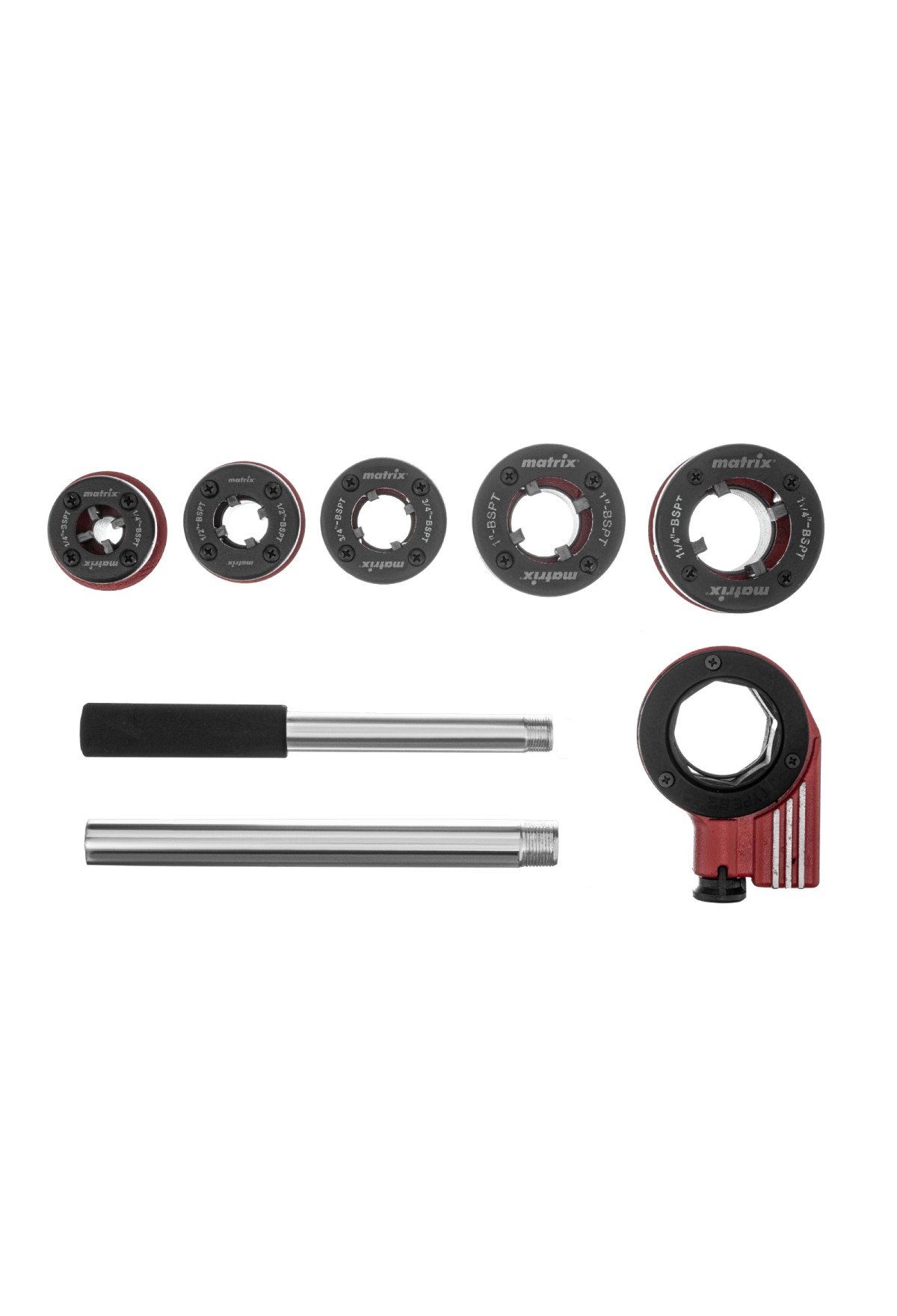 • Набор клуппов 1/4-1/2-3/4-1-1.25"+ плашкодержатель с трещоткой, 8 предметов Matrix