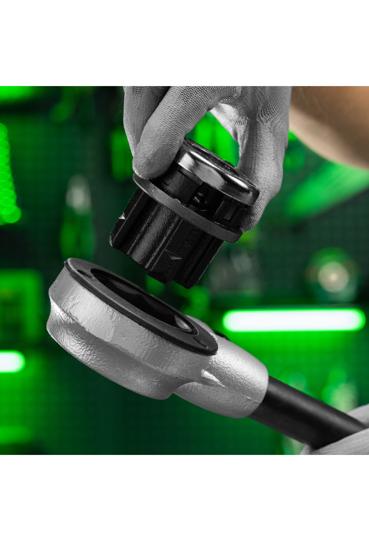 • Удобная работа в труднодоступных местах — храповой механизм позволяет вращать клупп, не переставляя ручку.