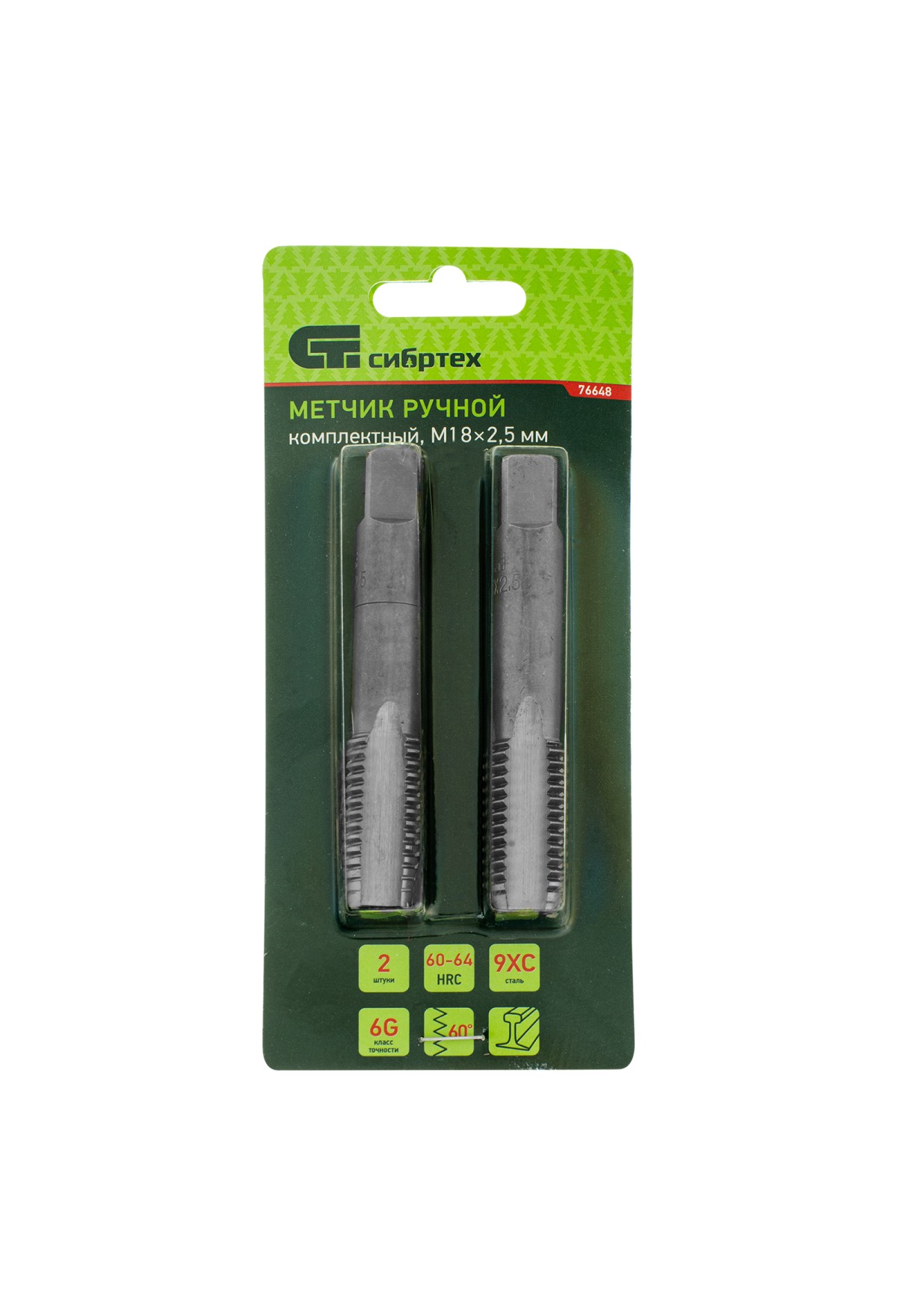 Метчик ручной М18 х 2.5 мм, комплект из 2 шт Сибртех