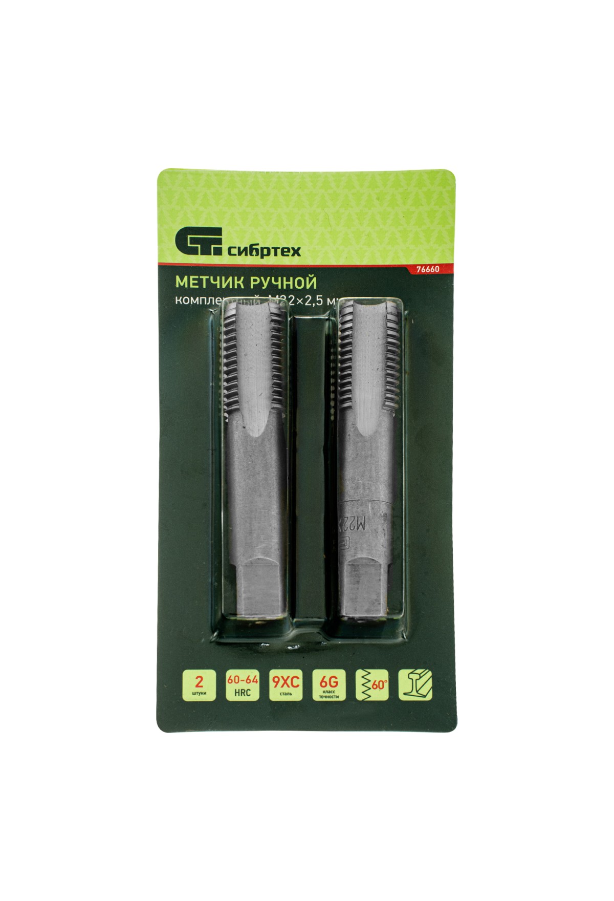 Технические характеристики Метчик ручной М22 х 2.5 мм, комплект из 2 шт Сибртех