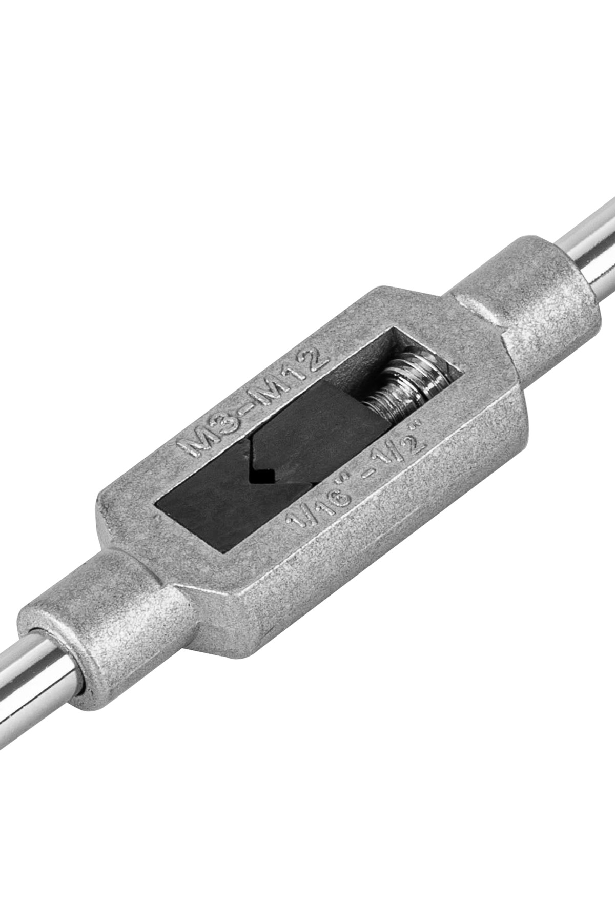 - Надежная фиксация метчика — вороток оснащен регулируемым винтовым механизмом.