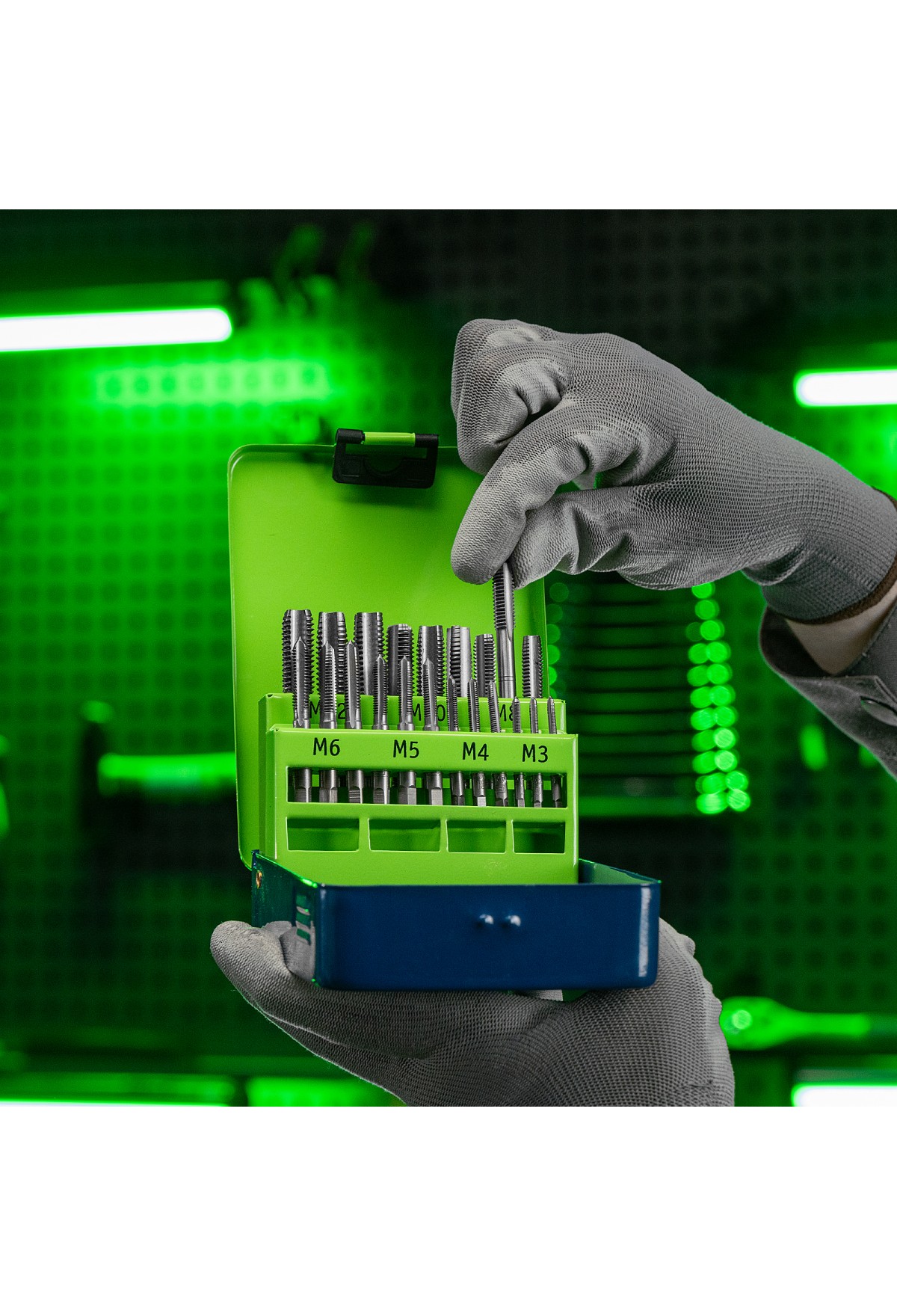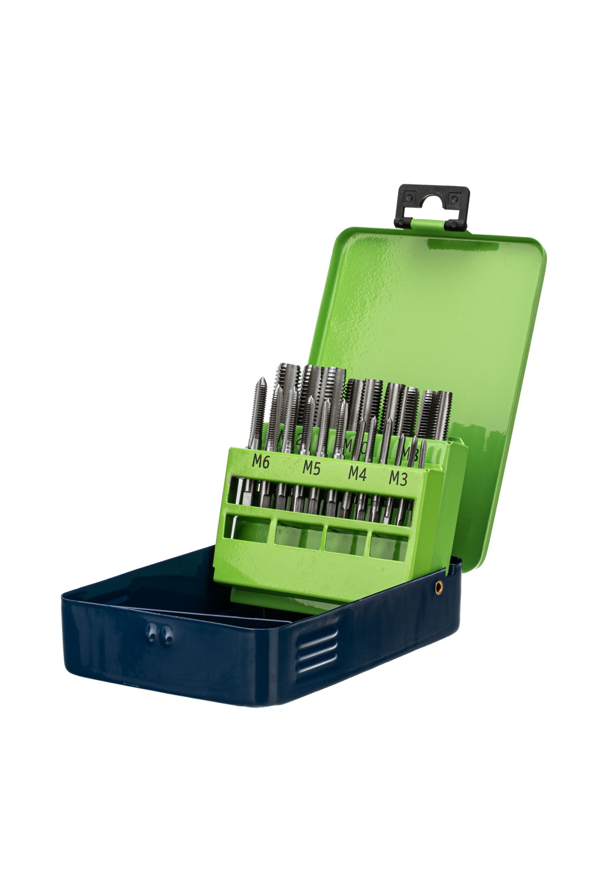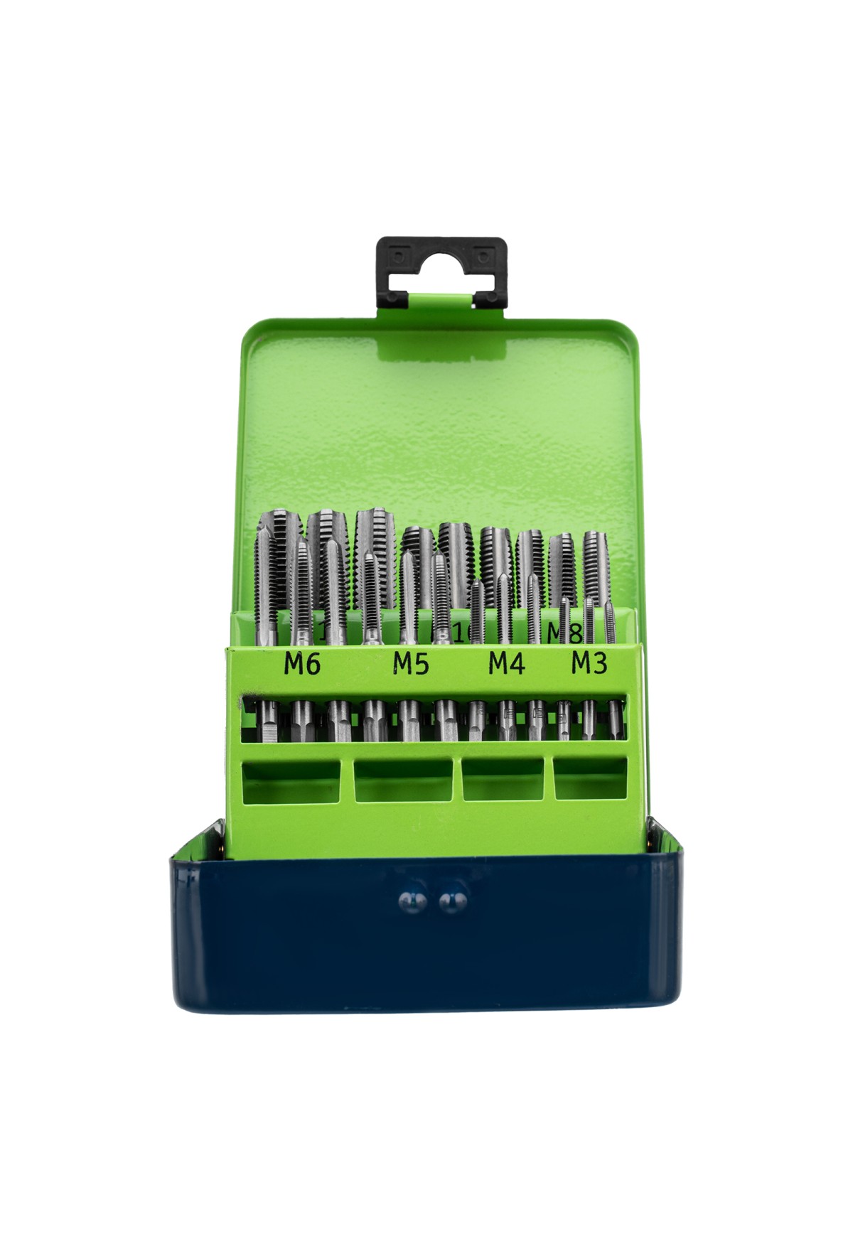 - Высокое качество резьбы — в набор входит по 3 метчика каждого размера: №1 для первичного прохода, №2 для повышения точности витков и №3 для финишной доводки.