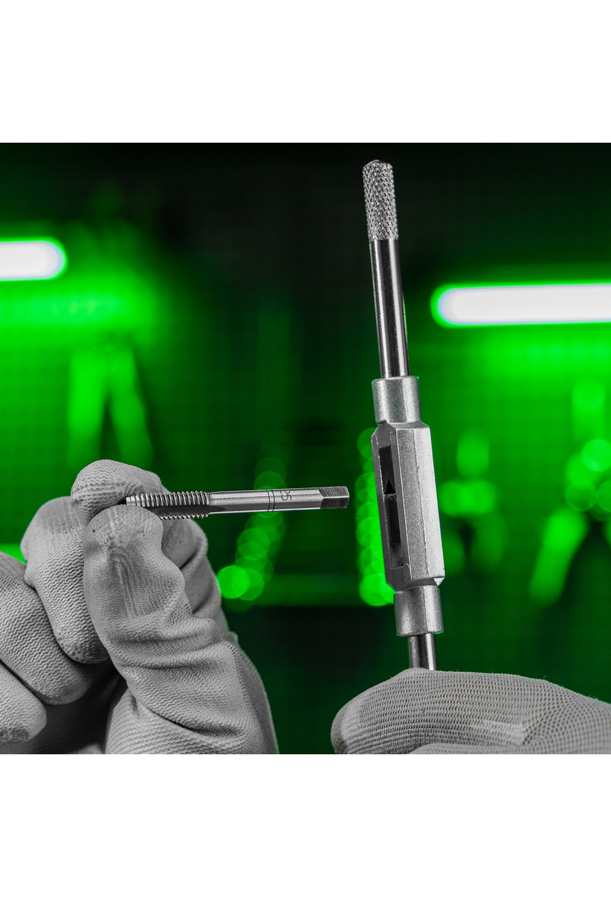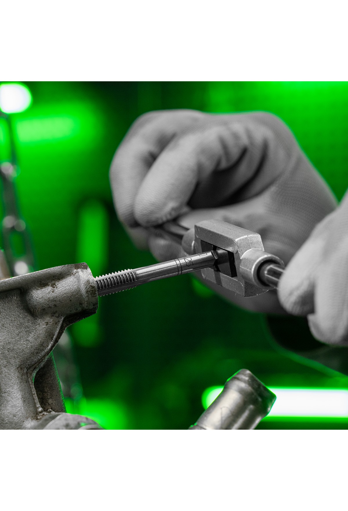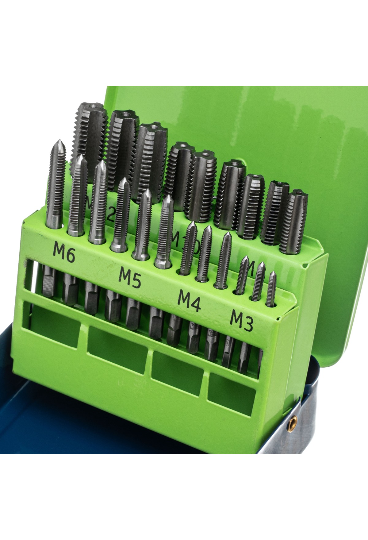 - Высокое качество резьбы — в набор входит по 3 метчика каждого размера: №1 для первичного прохода, №2 для повышения точности витков и №3 для финишной доводки.